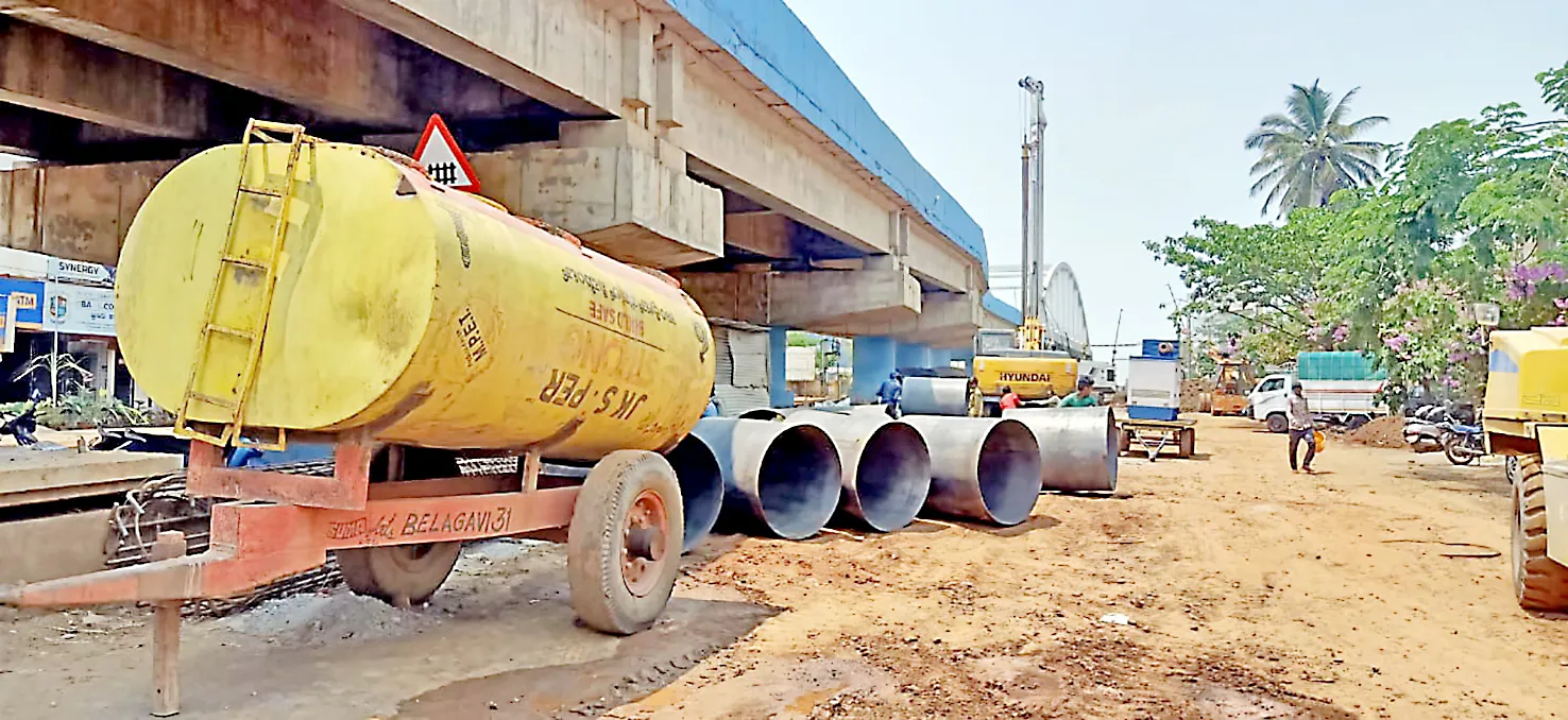 बेळगाव : शहराच्या मध्यवर्ती भागातून जाणाऱ्या रेल्वेमार्गावर मुख्य रस्त्याच्या ठिकाणी उड्डाणपुलाची उभारणी करण्यात येत आहे. या अंतर्गत तिसऱ्या रेल्वेफाटकावरील एका बाजूचा उड्डाणपूल पूर्ण झाला आहे. अलीकडेच दुसऱ्या बाजूच्या उड्डाणपुलाचे काम सुरू करण्यात आले आहे. हे काम युद्धपातळीवर सुरू असून फाटकावरून ये-जा करणारी वाहतूक पूर्णपणे बंद ठेवण्यात आली आहे. रेल्वे उड्डाणपूल खुले करण्यात आल्याने उड्डाणपुलावरूनच वाहनधारकांची ये-जा सुरू आहे. खानापूर रोड 120 फुटाचा असल्याने बसवेश्वर चौकाकडून उद्यमबागकडे ये-जा करणाऱ्या वाहनाची संख्या मोठ्या प्रमाणात आहे. तिसऱ्या रेल्वेफाटकावर सध्या उड्डाणपुलाची उभारणी केली असली तरी वाहनांची संख्या पाहता या उड्डाणपुलावर वाहतूक कोंडी होण्याची शक्यता आहे. त्यामुळे जाण्यासाठी वेगळा आणि येण्यासाठी वेगळा उड्डाणपूल उभारण्याचा प्रस्ताव रेल्वेखात्याने तयार केला होता. त्यानुसार एका बाजुच्या उड्डाणपुलाचे काम पूर्ण करून वाहतुकीस खुला करण्यात आला आहे. सध्या या रेल्वे उड्डाणपुलावरून दोन्ही बाजूची वाहतूक सुरू आहे. मात्र दुसऱ्या बाजुच्या उड्डाणपुलाचे काम पूर्ण झाल्यानंतर एकेरी वाहतूक सुरू केली जाणार आहे. दुसऱ्या बाजूच्या उड्डाणपुलाचे काम 15 दिवसांपूर्वी सुरू करण्यात आले आहे. उड्डाणपुलाचे पिलर उभारण्यासाठी पाया खोदाई करण्यात येत आहे. ड्रिलिंग मशिनद्वारा पाया खोदाई करून कॉलम उभारणी सुरू आहे. त्यामुळे दुसऱ्या बाजूचा रस्ता वाहतुकीस पूर्णपणे बंद ठेवण्यात आला आहे. सध्या तिसरा रेल्वेगेट बंद ठेवण्यात आला असून उड्डाणपुलाची उभारणी झाल्यानंतर हा फाटक कायमस्वरुपी बंद राहणार आहे. या रस्त्यावर सध्या उड्डाण पुलाच्या उभारणीचे साहित्य ठेवण्यात आले आहे. वाहनांना केवळ उड्डाणपुलावरून ये-जा करण्याची मुभा आहे. उड्डाणपुलाखाली रेल्वेफाटक पसिरात एका बाजूने सर्व्हिस रस्ता सुरू आहे. तर दुसऱ्या बाजूला पायाखोदाई, उड्डाणपुलाच्या उभारणीचे साहित्य पसरले असल्याने वाहनधारकांनादेखील आणि स्थानिक व्यावसायिकांना अडचणीचे ठरत आहे.