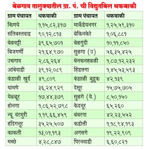 बेळगाव तालुक्यातील अनेक ग्राम पंचायतींनी मागील अनेक महिन्यांपासून हेस्कॉमची थकबाकी केली आहे. तब्बल 14 कोटी रुपये ग्राम पंचायतींची थकबाकी असून विद्युतबिल भरण्यासाठी ग्राम पंचायतींना वारंवार सूचना करण्यात आल्या आहेत. राज्य सरकारकडून निधी मंजूर होताच बिल भरले जाईल, असे ग्राम पंचायतींकडून सांगण्यात येत आहे.