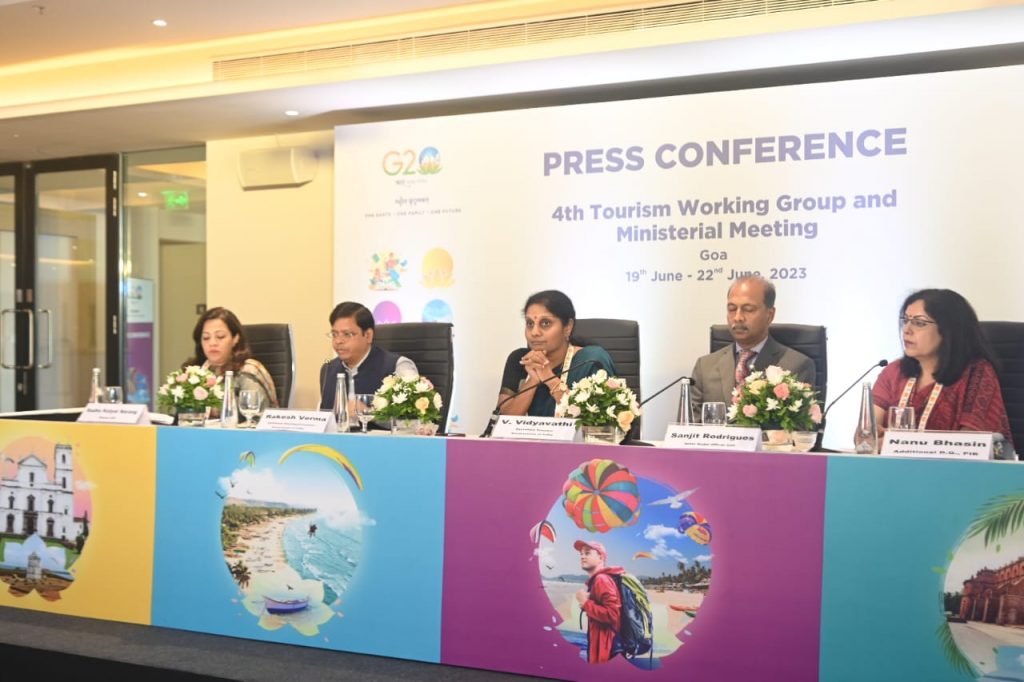 पणजी : जी20 कृतीगटाची पर्यटन मंत्रीस्तरीय समारोपाची बैठक आज दि. 19 पासून गोव्यात प्रारंभ होत आहे. क्रूझ टुरिझम, ग्लोबल टुरिझम, प्लॅस्टिक इनिशिएटिव्ह आणि सार्वजनिक खाजगी क्षेत्रांच्या महत्त्वाच्या उपक्रमांसंदर्भात या बैठकीत चर्चा, परिसंवाद होणार आहेत. जी20 सदस्य देश, केंद्रीय मंत्रालये, आंतरराष्ट्रीय संघटना आणि विविध राज्य सरकारे यांचा त्यात सहभाग आहे. पत्र सूचना कार्यालयातर्फे काल रविवारी दोनापावला येथे आयोजित करण्यात आलेल्या पत्रकार परिषदेत पर्यटन सचिव व्ही. विद्यावती यांनी ही माहिती दिली. यावेळी जी 20 च्या संचालक राधा कटीयाल, अतिरिक्त पर्यटन सचिव राकेश वर्मा, राज्य नोडल अधिकारी संजीत रॉड्रिग्ज व नानू भसिन यांची उपस्थिती होती.
