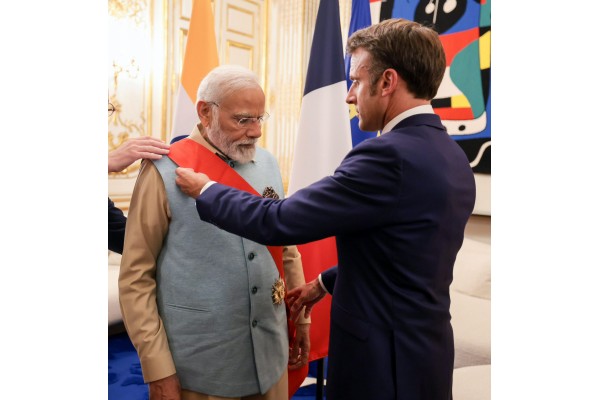 पंतप्रधान नरेंद्र मोदींना फ्रान्सचा सर्वोच्च ‘ग्रँड क्रॉस ऑफ लीजन ऑफ ऑनर’ पुरस्कार देण्यात आला आहे. ते सध्या फ्रान्सच्या दोन दिवसांच्या दौऱ्यावर असून या दौऱ्याच्या दुसऱ्या दिवशी त्यांना हा पुरस्कार या देशाची राजधानी पॅरिस येथे देण्यात आला. त्यासमवेतच भारत आणि फ्रान्स यांच्यात युपीआयच्या उपयोगासंदर्भात करार करण्यात आला आहे. गुरुवारी पंतप्रधान मोदी यांनी फ्रान्सच्या बॅस्टिल दिन या सर्वात महत्वाच्या कार्यक्रमाचे प्रमुख अतिथी म्हणून सन्मान स्वीकारला. तसेच भारतीय समुदायाच्या कार्यक्रमातही त्यांनी भाग घेतला. भारत आणि फ्रान्स यांच्यात संरक्षण साधने खरेदीलाही चालना देण्यात आली.