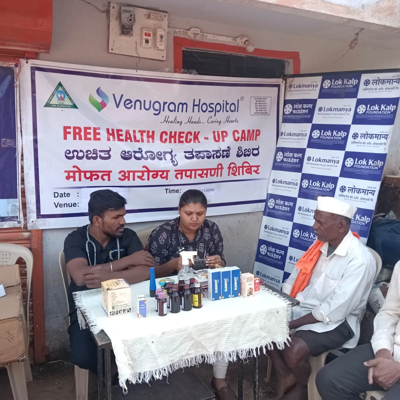 बेळगाव : लोककल्प फौंडेशन व वेणुग्राम हॉस्पिटलतर्फे खानापूर तालुक्यातील हब्बनहट्टी येथे मोफत आरोग्य शिबिर घेण्यात आले. यावेळी बीपी व शुगर चाचणी करून आरोग्यासाठी सल्ला देण्यात आला. हॉस्पिटलचे डॉ. बसवराज, डॉ. कृतिका, नर्स श्रीरक्षा, पीआरओ जगदीश बेळगावकर व योगेश देशपांडे यांनी हे शिबिर यशस्वी केले. यावेळी लोककल्पचे संतोष कदम व संदीप पाटील उपस्थित होते.