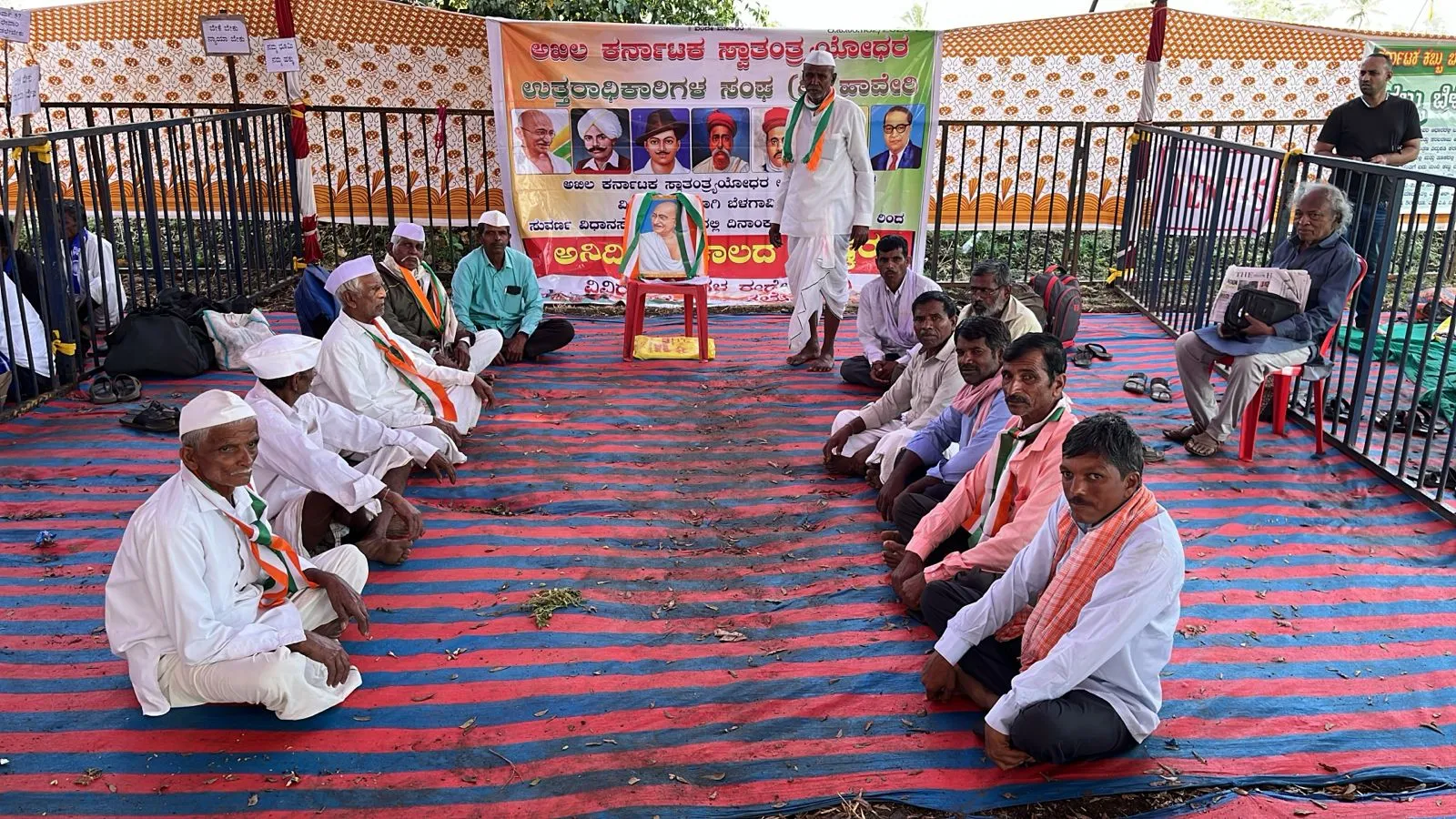 बेळगाव : राज्यातील स्वातंत्र्य सैनिकांच्या कुटुंबीयांना स्वातंत्र्य सैनिक म्हणून घोषित करा, स्वतंत्र्य सैनिक कुटुंबातील वारसांना मासिक मानधन द्या, कुटुंबीयांच्या वारसांना ओळखपत्र द्या, स्वातंत्र्य सैनिक कुटुंबीयांच्या मुला-मुलींना सरकारी नोकरीत 5 टक्के आरक्षण द्या, स्वातंत्र्य सैनिकांच्या मुलांना मोफत बसप्रवास द्या, कुटुंबीयांना सवलतीच्या दरात वीजपुरवठा करा, स्वातंत्र्य सैनिकांच्या अंत्यविधीसाठी देण्यात येणारा शासकीय निधी वाढवून द्या, आदी मागण्यांसाठी अखिल कर्नाटक स्वातंत्र्य सैनिक उत्तराधिकारी संघातर्फे विधानसौध परिसरात आंदोलन छेडण्यात आले.