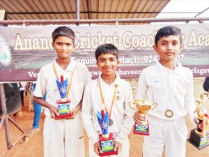 बेळगाव : आनंद क्रिकेट अकादमी आयोजित सुरेश गडकरी चषक आंतरकॅम्प 12 वर्षाखालील क्रिकेट स्पर्धेच्या अंतिम सामन्यात आनंद अकादमीने एम्स क्रिकेट अकादमी सावंतवाडी संघाचा 7 गड्यांनी पराभव करुन सुरेश गडकरी चषक पटकाविला. अथर्व करडीला मालिकावीर व सामनावीर पुरस्काराने गौरविण्यात आले. भगवान महावीर मैदानावर खेळविण्यात आलेल्या अंतिम सामन्यात एम्स क्रिकेट अकादमी सावंतवाडी संघाने प्रथम फलंदाजी करताना 25 षटकात सर्व गडी बाद 104 धावा केल्या. त्यात अर्जुन सालीने 4 चौकारांसह 41 तर स्पर्शने 2 चौकारांसह 26 धावा केल्या. आनंद अकादमीतर्फे अथर्व करडीने 12 धावात 3 गडी बाद केले. प्रत्युत्तरादाखल खेळताना आनंद अकादमीने 23.4 षटकात 3 गडी बाद 105 धावा करत सामना 7 गड्यांनी जिंकला. त्यात अथर्व करडीने 5 चौकारांसह नाबाद 38 तर ओजस गडकरीने 2 चौकारांसह नाबाद 14 धावा केल्या. एम्सतर्फे द्विग्विजय देसाईने 2 गडी बाद केले. सामन्यानंतर प्रमुख पाहुणे, पुरस्कर्ते सुरेश गडकरी, दर्शन गडकरी, जमीर पटवेगार व आनंद करडी यांच्या हस्ते विजेत्या आनंद अकादमीला व उपविजेत्या एम्स क्रिकेट अकादमी सावंतवाडी संघाला चषक व प्रमाणपत्र तर सर्व खेळाडूंना पदके देऊन गौरविण्यात आले. अंतिम सामन्यातील मालिकावीर व सामनावीर अथर्व करडी (आनंद अकादमी), उत्कृष्ट फलंदाज स्पर्श (सावंतवाडी), उत्कृष्ट गोलंदाज मयांक रावूल (सावंतवाडी) यांना देऊन गौरविण्यात आले. स्पर्धा यशस्वी करण्यासाठी आनंद अकादमीच्या पदाधिकाऱ्यांनी परिश्रम घेतले.