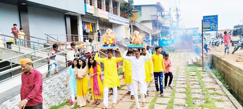 दिवसभर विविध भागांतून गणेशमूर्ती आणण्याचे काम सुरू होते. त्यानंतर भक्तीभावाने पूजा, अर्चा करण्यात येत होती. विविध वाहनांतून सवाद्य मूर्ती आणण्यात येत होती. कोरोनानंतर पहिल्यांदाच इतक्मया मोठय़ा प्रमाणात हा उत्सव साजरा करण्यात येत आहे. त्यामुळे साऱयांचाच आनंद व्दिगुणीत झाला होता.