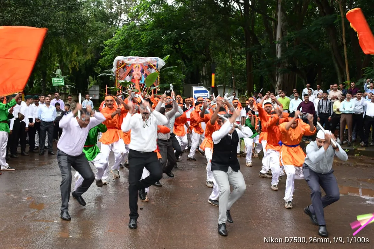 बेळगाव : मराठा लाईट इन्फंट्री रेजिमेंटल सेंटर, बेळगाव येथे गणेश चतुर्थीचा पावन उत्सव मोठ्या भक्तिभावाने आणि उत्साहात साजरा करण्यात आला. ऐतिहासिक महादेव मंदिरात झालेल्या या सोहळ्याने परिसरात उत्साही वातावरण होते. मराठा लाईट इन्फंट्रीचे जवान आणि अधिकारी यांनी पारंपरिक लेझीम खेळत गणरायाचे आगमन भव्य पद्धतीने केले. लेझीमच्या गजरात, देशभक्तीचा जोश आणि उत्सवाची उमंग यांचा संगम पाहायला मिळाला. जवानांच्या तालबद्ध पावलांमध्ये आणि घोषणांमध्ये एक वेगळीच ऊर्जा दुमदुमली होती, ज्यामुळे गणेशाचे आगमन अधिकच रंगतदार झाले. यावेळी मराठा लाईट इन्फंट्रीचे ब्रिगेडियर जॉय मुखर्जी व त्यांची पत्नी मृणालिनी मुखर्जी यांनी गणेश पूजा, अभिषेक व आरती करून उत्सवाचे नेतृत्व केले. या सोहळ्यात मराठा लाईट इन्फंट्रीचे अधिकारी, जेसीओ, एनसीओ व 600 हून अधिक जवान परिवारासह उपस्थित होते.