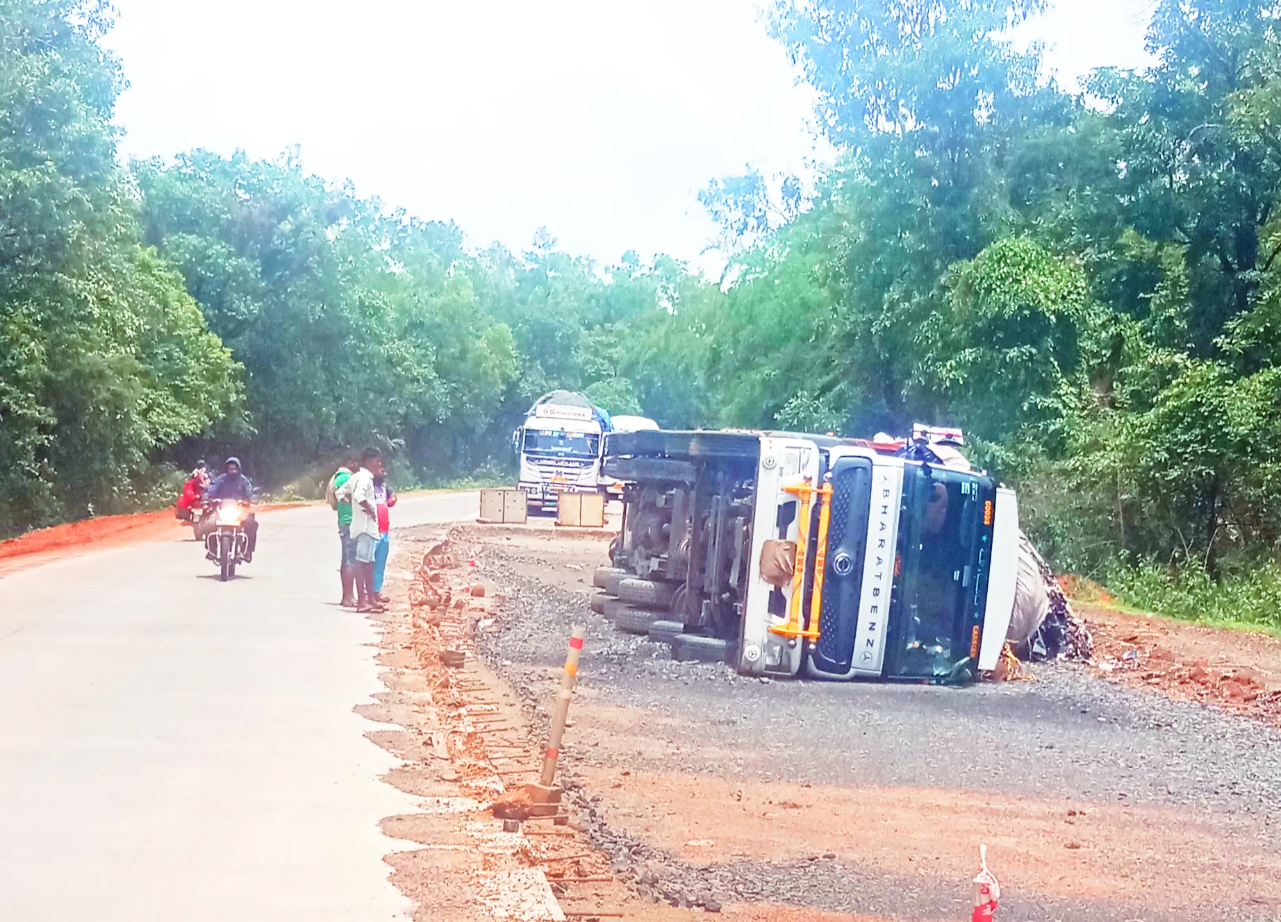गोव्याहून बेळगावकडे जाणारा कचरा वाहू अवजड ट्रक पलटी होऊन झालेल्या अपघातात ट्रकचालक किरकोळ जखमी झाल्याची घटना बुधवारी गुंजीनजीक घडली. कचरा वाहू वाहन महामार्गावरून बेळगावकडे जात असताना गुंजीनजीक असलेल्या अर्धवट रस्त्यामुळे सदर वाहनाचा अपघात घडला. सध्या शिंपेवाडी क्रॉसजवळ दुहेरी रस्ता संपला आहे. त्या ठिकाणाहून एकेरी वाहतूक सुरू आहे. मात्र दुहेरी रस्ता संपलेल्या ठिकाणी कोणत्याही प्रकारचा दिशाफलक किंवा अडथळा निर्माण नसल्याने हा ट्रक थेट रस्ता नसलेल्या जागी जाऊन पलटी झाल्याने वाहनाचे मोठ्या प्रमाणात नुकसान झाले आहे. त्यामुळे कंत्राटदाराचा हलगर्जीपणामुळे सध्या या मार्गावर अनेक अपघात घडत असून वाहनधारकातून संताप व्यक्त केला जात आहे. या आधीही याच ठिकाणी आणखी एक ट्रक रस्त्या बाहेर गेल्याने अपघात घडला होता. त्यामुळे सदर कंत्राटदाराने योग्य ते नियोजन करण्याची गरज वाहन चालकातून व्यक्त केली जात आहे.