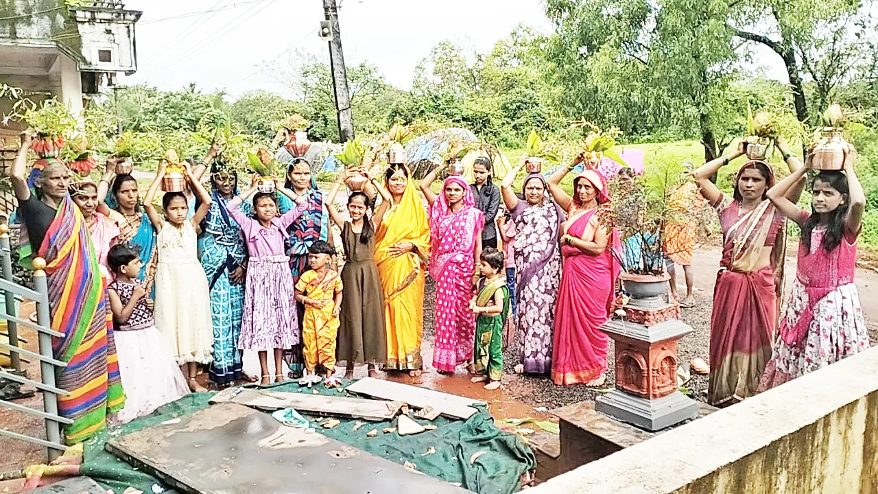 पारंपरिक पद्धतीने ग्रामीण भागातील गाणी म्हणत केले गौराईचे स्वागत : मनोभावे केले पूजन