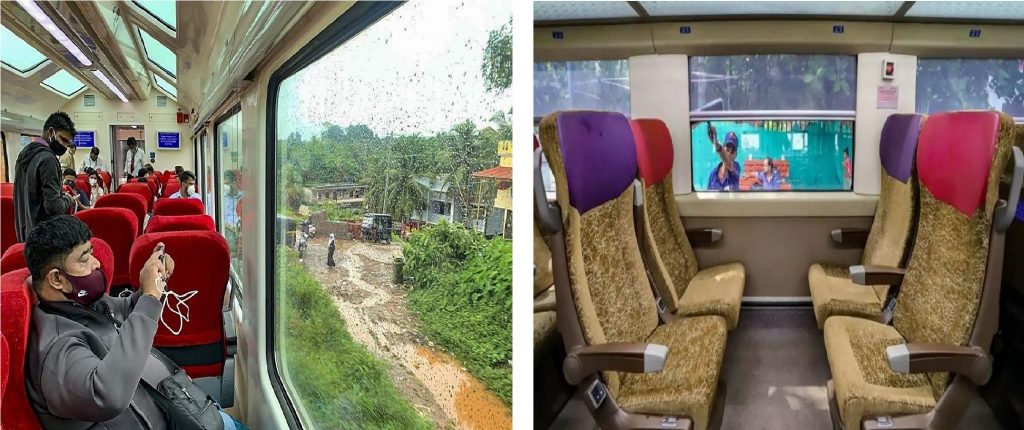 या टेनला आठ बोगी असून यात 360 अंशात फिरणाऱ्या विस्टा डोम सीटचा देखील समावेश आहे. टेनमध्ये स्वयंचलित दरवाजे आहेत. अतिशय स्वच्छ आणि आधुनिक स्वच्छतागृह असून, त्याचा दरवाजा देखील हाताच्या सेन्सरने उघडतो. टेनमध्ये एलईडी लाईट्सची सुविधा असून, त्यामुळे आतील वातावरण प्रसन्न राहत आहे. पीठमपूर-मध्यप्रदेशातील पिनॅकल इंडस्ट्रीजने वंदे भारत ट्रेनसाठी आसने तयार केली आहेत. पिनॅकल इंडस्ट्रीज ही भारतातील एकमेव इंटिग्रेटेड कमर्शियल व्हेईकल सीटिंग आणि इंटेरियर तयार करणारी कंपनी आहे.