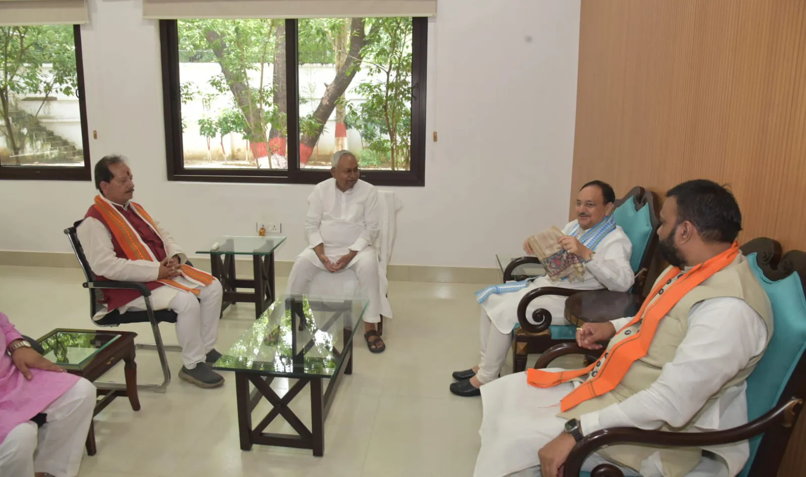 भाजप अध्यक्ष नड्डा यांच्या दोन दिवसीय बिहार दौऱ्याची सुरुवात शुक्रवारी पाटणा येथून झाली आहे. यादरम्यान न•ा यांनी मुख्यमंत्री नितीश कुमार यांच्याशी चर्चा केली आहे. यावेळी नड्डा यांच्यासोबत भाजप प्रदेशाध्यक्ष दिलीप जायसवाल, उपमुख्यमंत्री सम्राट चौधरी आणि विजय सिन्हा देखील उपस्थित होते.