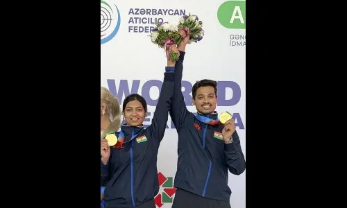 अझरबेजानमधील बाकू येथे झालेल्या आयएसएसएफ विश्वचषक रायफल- पिस्तुल- शॉटगन नेमबाजी स्पर्धेत शनिवारी 50 मी. रायफल थ्री पोझिशन मिश्र सांघिक प्रकारात भारताच्या स्वप्नील कुसाळे आणि ऍशी चोक्सी यांनी सुवर्णपदक पटकाविले. या स्पर्धेच्या गुणतक्त्यात भारताने दुसरे स्थान मिळविताना दोन सुवर्ण आणि तीन रौप्यपदकांची कमाई केली. कोरियाने पदक तक्त्यात आघाडीचे स्थान मिळविले.