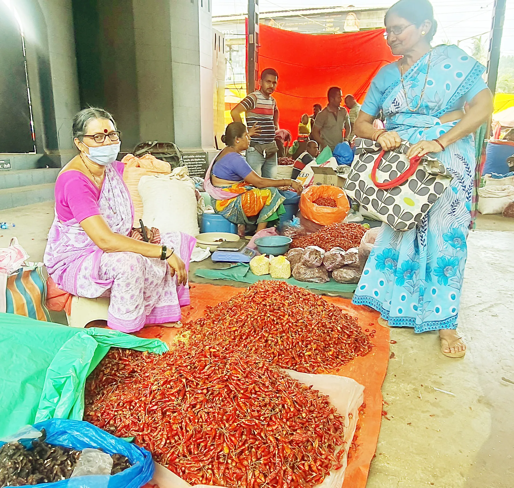 मिरची लागवड करून त्याचे पिक घेण्यासाठी गोमंतकीय लोक बरीच मेहनत घेत असतात. शेतात किंवा पोरसू पद्धतीने लावण्यात येणारी मिरची वाचविण्यासाठी व ती पूर्ण क्षमतेने वाढवून पिक घेण्यासाठी बरीच मेहनत घ्यावी लागते. त्यानंतर ती कडक उन्हात सुकवून बाजारात आणण्याचे कष्ट घ्यावे लागतात. परंतु, बाजारात आल्यानंतर बाहेरच्या मिरचीमुळे गोमंतकीय मिरचीला दर मिळत नाही. त्यामुळे आमच्या कष्टावर दरवर्षी पाणी फेरले जाते, अशी कैफियत आमठाणे मेणकुरे येथील लक्ष्मी नाईक व सुहासिनी बोर्डेकर या मिरची विक्रेत्यांनी या प्रतिनिधीकडे मांडली.
