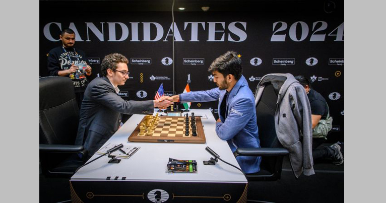 कँडिडेट्स बुद्धिबळ स्पर्धेच्या चौथ्या फेरीत ग्रँडमास्टर डी. गुकेशने अव्वल मानांकित अमेरिकेच्या फॅबियानो काऊआनाला बरोबरीत रोखून चांगली कामगिरी करून दाखविली, तर विदित गुजराथीला रशियाच्या इयान नेपोम्नियाचीकडून पराभव पत्करावा लागला.