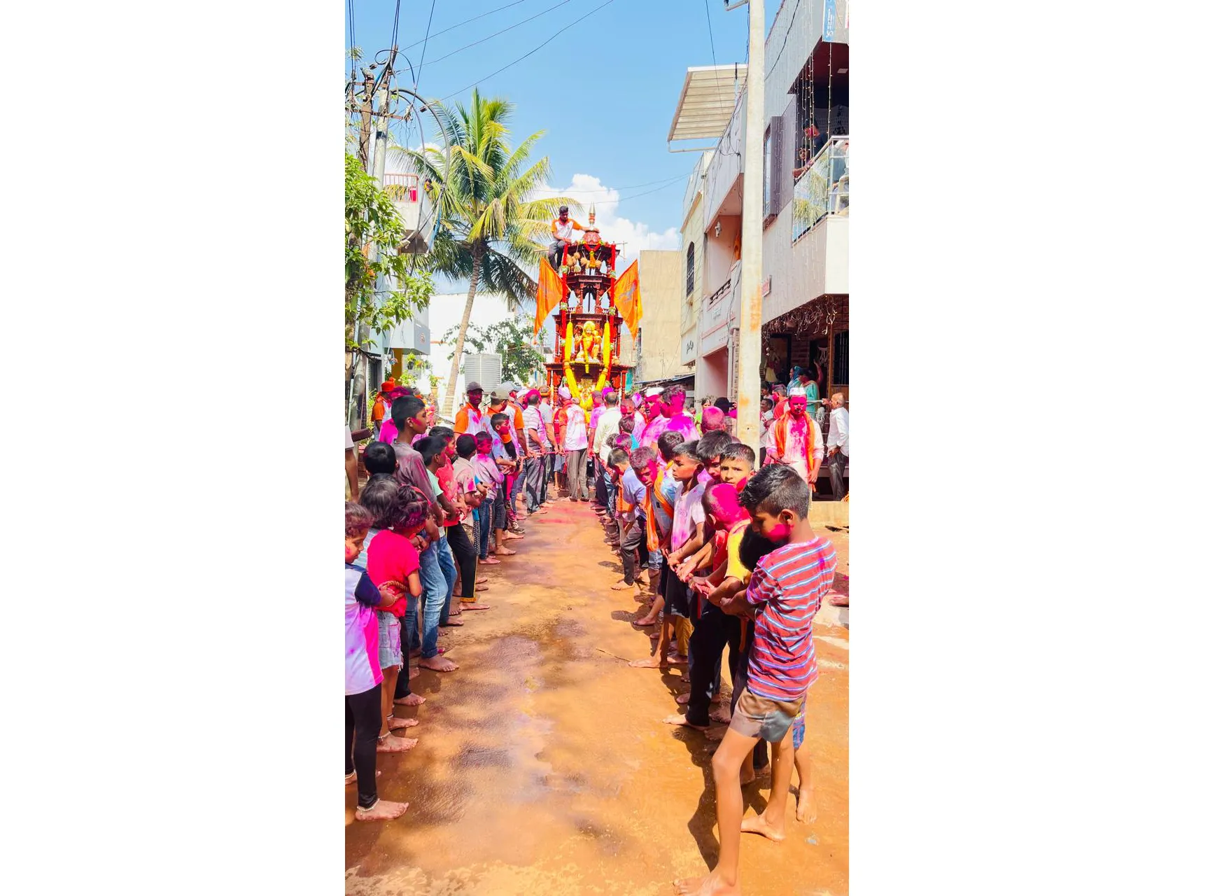 अनगोळ ग्रामदेवता श्री मारूती मंदिर, मारूती गल्ली येथील रथाची मान्यवरांच्या उपस्थितीत पूजा करून मिरवणुकीला सुरूवात झाली. युवकांनी रथ ओढण्यास सुरूवात केली. लोहार गल्ली, भांदूर गल्ली, भेंडीगेरी गल्ली, सुभाष गल्ली, हणमण्णावर गल्ली, मारूती गल्ली येथे रथ पोहचला. यावेळी प्रत्येक गल्लीतील महिलांनी व नागरिकांनी रथाची पाणी घालून श्रीफळ वाढवून पूजा केली. यावेळी रथासमोर डॉल्बीच्या निनादात युवक गुलालाची उधळण करीत थिरकताना पहावयास मिळाले. हनुमान युवक मंडळ व्यायाम शाळा, मारूती गल्ली यांच्यावतीने रथ फिरविण्यात आला. यावेळी मारूती गल्ली येथील युवक तसेच मंडळाचे पंच मिरवणुकीत मोठ्या संख्येने उपस्थित होते.