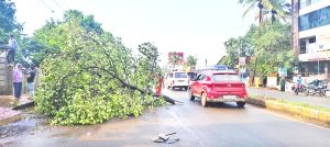 रस्त्यावर झाड कोसळल्यामुळे वाहतुकीची कोंडी