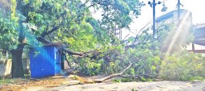 चहा कॅन्टीनवर झाडे कोसळून नुकसान