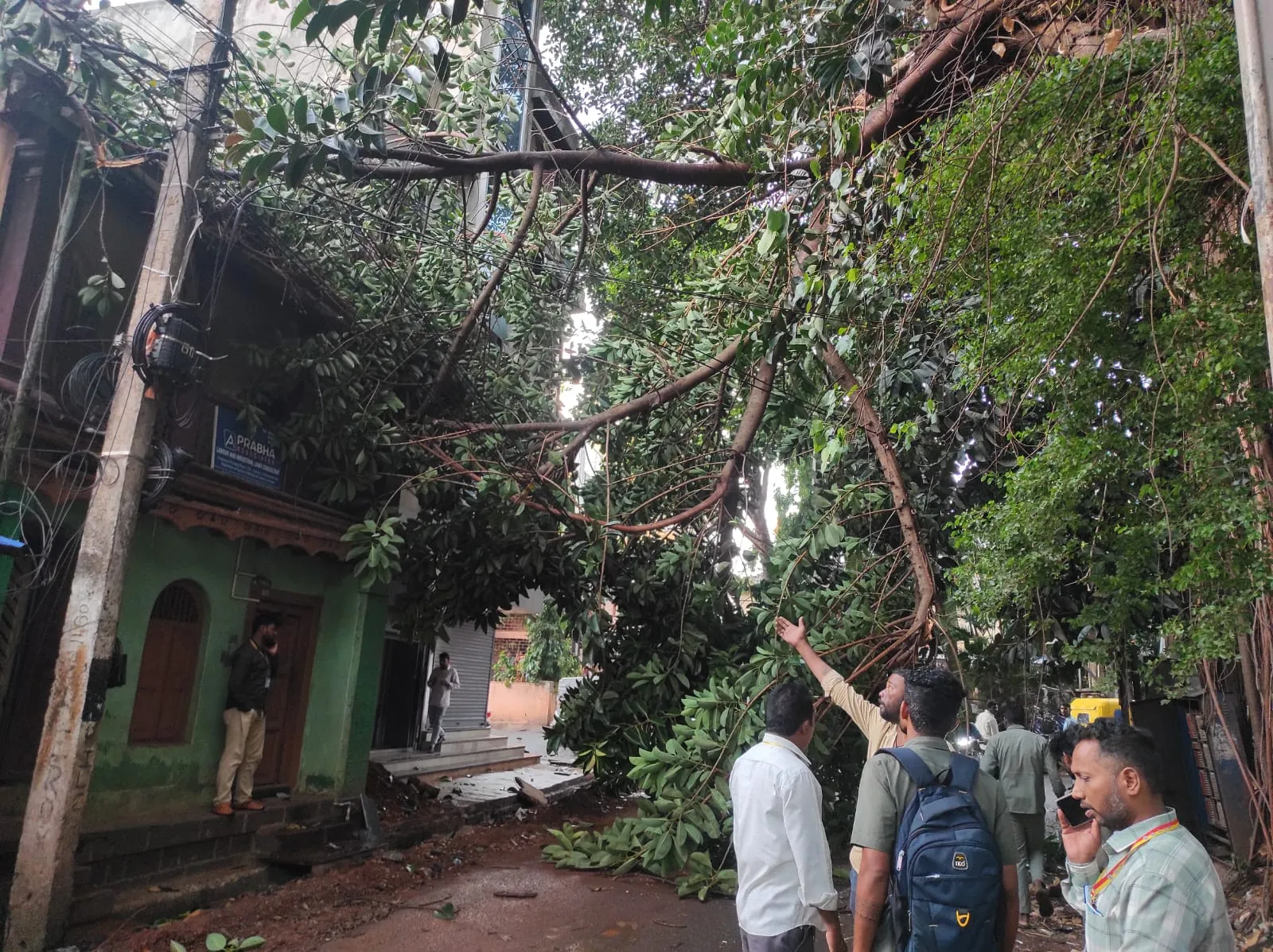 वडाच्या झाडाची फांदी वीजवाहिन्यांवर कोसळली