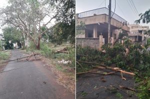 शुक्रवारी वळिवाच्या पावसामुळे शहरात अनेक ठिकाणी झाडे कोसळली. यामुळे वीजवाहिन्या तुटून वीजपुरवठा ठप्प होता. वाऱ्याचा जोर कमी झाल्यानंतर रात्री उशिरापर्यंत दुरुस्तीचे काम सुरू होते. दुरुस्तीचे काम पूर्ण झाल्यानंतर वीजपुरवठा सुरळीत केला.