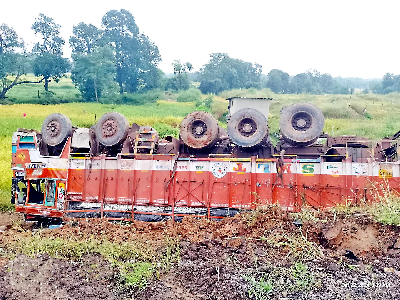 रामनगरहून खानापूरकडे जाणाऱ्या एका भरधाव अवजड वाहनावरील चालकाचे नियंत्रण सुटल्याने अवजड वाहन रस्त्याच्या बाजूला उलटले. या अपघातात ट्रकचालक आणि क्लीनर सुदैवाने बचावल्याची घटना मंगळवारी पहाटे गुंजीनजीक घडली. मात्र ट्रकमध्ये असलेले चालक व क्लीनर किरकोळ जखमी झाले असून त्यांनी स्वत:ची सुटका करून घेऊन पसार झाल्याचे समजते. ट्रकमध्ये चुनखडी भरलेली असून अपघातामुळे ती विखुरली आहे. सध्या या महामार्गाचे काम प्रगतीपथावर आहे. केवळ पंधरा दिवसापासून या महामार्गावरून अवजड वाहतूक सुरू झाली असून, अवजड वाहने भरधाव धावत आहेत. पादचारी आणि दुचाकीधारकांना या भरधाव वेगामुळे जीव मुठीत घेऊनच प्रवास करावा लागत आहे. सदर अपघातही वेगावर नियंत्रण नसल्यानेच झाला असून अवजड वाहनांच्या वेगावर नियंत्रण ठेवणे गरजेचे असल्याचे नागरिकांतून बोलले जात आहे.