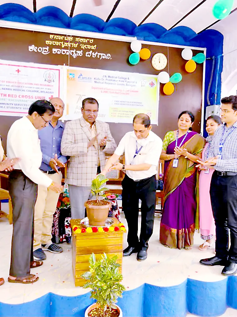 स्वातंत्र्याच्या अमृतमहोत्सवानिमित्त जवाहरलाल नेहरू वैद्यकीय महाविद्यालयातील युथ रेडक्रॉस विभाग, केएलई इस्पितळातील गॅस्ट्रो एन्ट्रॉलॉजी विभागांच्यावतीने हिंडलगा येथील मध्यवर्ती कारागृहात कैद्यांची तपासणी व हेपॅटायटिस बी लसीकरण अभियान राबविण्यात आले.