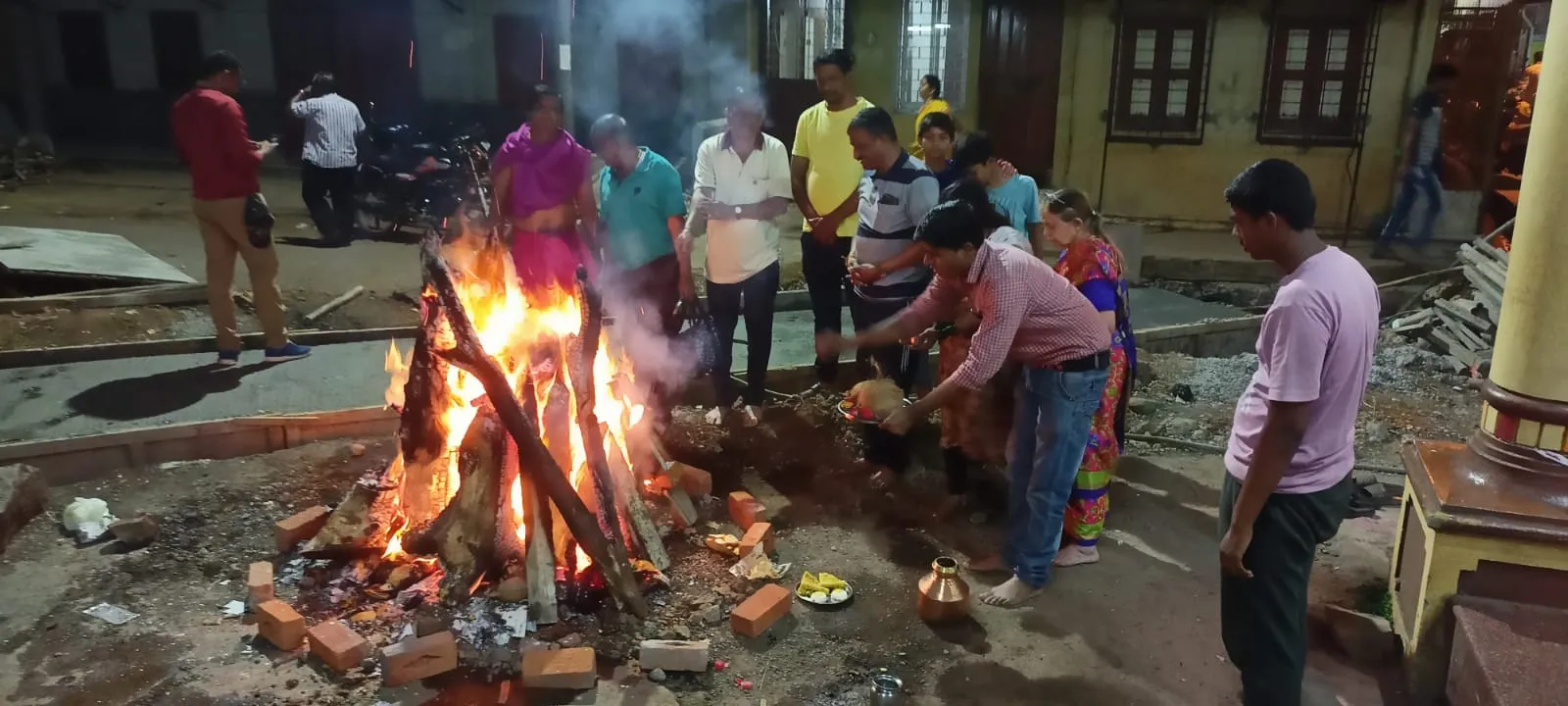 बेळगाव : शहरासह उपनगरात सोमवारी सायंकाळी पारंपरिक पद्धतीने होळी उत्साहात साजरी करण्यात आली. शहरात विविध ठिकाणी रचलेल्या गोवऱ्या व डहाळीला नारळ, बाशिंग बांधून होळीची पूजा करण्यात आली. दरम्यान होळीला पुरणपोळीचा नैवेद्य दाखवून प्रज्वलित करण्यात आली. होळी कामाण्णांची पूजा करून होळीत नैवेद्य व नारळ अर्पण करण्यात आला. होळी आणि धुलिवंदनासाठी शहरात चैतन्यमय वातावरण निर्माण झाले आहे. शहरातील गवळी गल्ली, गोंधळी गल्ली, चव्हाट गल्ली, पांगुळ गल्ली, कडोलकर गल्ली, समादेवी गल्ली, कंग्राळ गल्ली, गणपत गल्ली, टेंग्गीनकेरा गल्ली, भुई गल्ली, भातकांडे गल्ली, खडक गल्ली आदी ठिकाणी होळी पेटविण्यात आली. तर काही ठिकाणी पर्यावरणपूरक होळी साजरी करण्यावर भर देण्यात आला. रचलेल्या होळीसभोवती आकर्षक रांगोळी-सजावट केली होती. कोरोनाच्या दोन वर्षांच्या संकटानंतर यंदा होळी उत्साहात साजरी झाली.