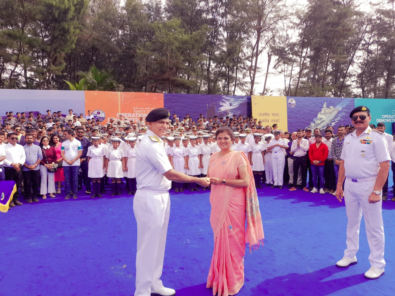 मालवण तहसीलदार वर्षा झालटे यांच्या सह काही प्रशासकीय अधिकाऱ्यांचा नौदल प्रमुख एडमिरल. आर. हरी .कुमार यांच्या हस्ते कौतुकाचा बिल्ला आणि प्रशंसा पत्र देऊन सन्मान करण्यात आला.