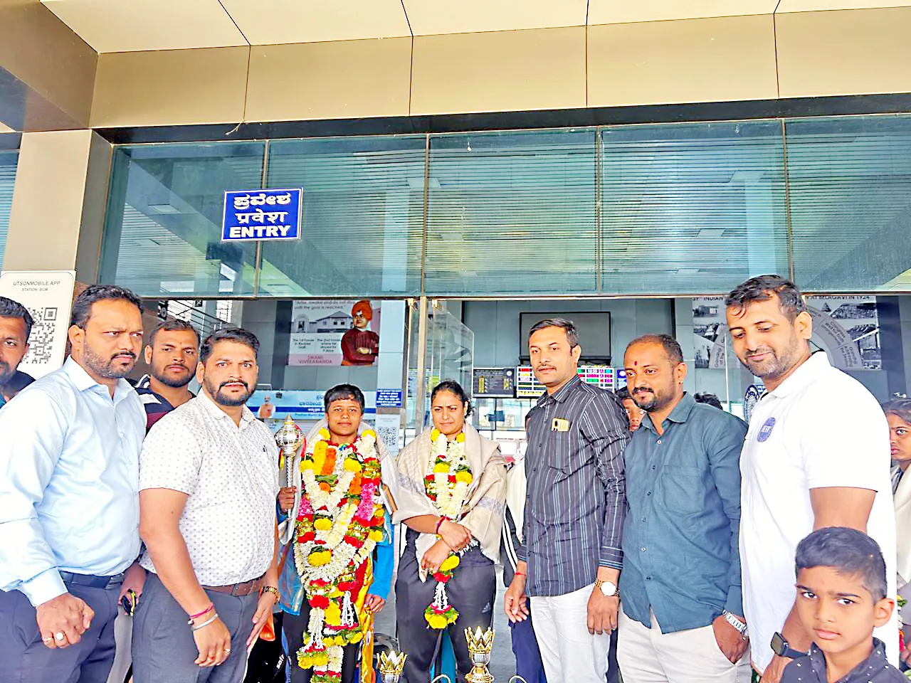 बेळगाव : म्हैसूर येथे दसरा महोत्सवानिमित्त दसरा क्रीडा स्पर्धेत कुस्ती प्रकारात कडोली गावची कन्या स्वाती पाटील दसरा किशोरी व सीएम चषकासह दुहेरी मुकुट पटकाविला आहे. तिच्या या यशाबद्दल बेळगाव जिल्हा कुस्तीगीर संघटनेच्यावतीने स्वाती पाटील व प्रशिक्षक स्मिता पाटील यांचा खास गौरव करण्यात आला. मंगळवारी सायंकाळी बेळगाव रेल्वे स्थानकावरती पैलवान स्वाती पाटील व प्रशिक्षिका स्मिता पाटील यांचे आगमन झाले. स्वाती पाटीलने 49 वजनी गटात दसरा किशोरी हा मानाचा किताब पटकाविला. त्याचप्रमाणे सीएम चषक स्पर्धेतही अजिंक्यपद पटकाविले. तिने केलेल्या या कार्याची दखल घेऊन बेळगाव जिल्हा कुस्तीगीर संघटनेचे अध्यक्ष सुधीर पाटील, सचिव जोतिबा हुंदरे, शिवाजी पाटील, अभिजित पाटील, मंथन हणमशेट, आनंद स्तावरमठ, विनायक मुतगेकर, दीपक फडके आदी मान्यवरांच्या हस्ते पैलवान स्वाती पाटील व प्रशिक्षिका स्मिता पाटील यांचा खास सत्कार करण्यात आला. सत्कार करून त्यांना खास शुभेच्छा देण्यात आल्या. यावेळी स्वाती पाटीलचे वडील राजू पाटीलसह मान्यवर उपस्थित होते.
