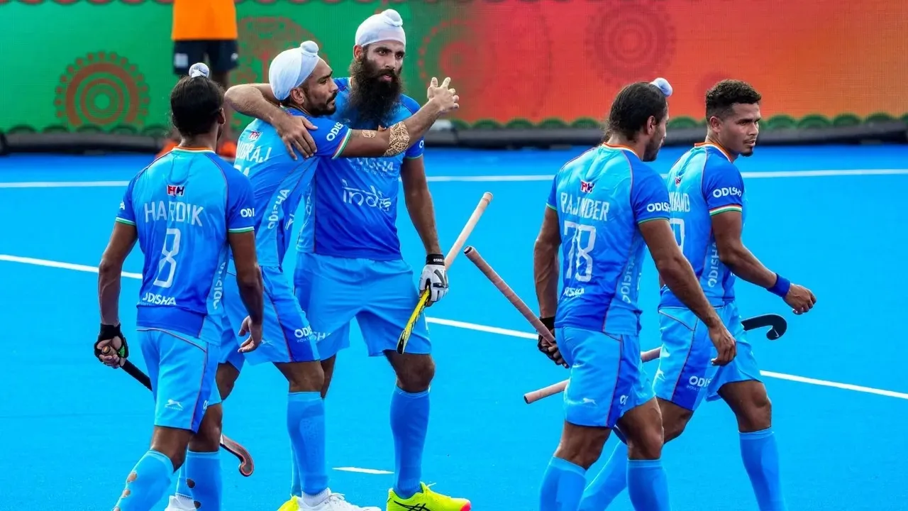 भारत आणि चीन यांच्यातील या सलामीच्या सामन्यात भारतीय खेळाडूंना 11 पेनल्टी कॉर्नर्स मिळाले आणि त्यापैकी चार कॉर्नर्सवर गोल नोंदविला. कर्णधार हरमनप्रित सिंगने 20 व्या, 33 व्या, 47 व्या मिनिटाला मिळालेल्या पेनल्टी कॉर्नर्सवर गोल नोंदविले. मात्र हरमनप्रित सिंगकडून पेनल्टी स्ट्रोकवर गोल नोंदविता आला नाही. भारताचा चौथा गोल जुगराज सिंगने 18 व्या मिनिटाला केला. चीनतर्फे 12 व्या मिनिटाला शिहाओ डूने, बेनहेल चेनने 35 व्या मिनिटाला तर जिशेंग गाओने 41 व्या मिनिटाला गोल केले. सामन्याला प्रारंभ झाल्यानंतर मनदीप सिंगने शानदार चाल रचली आणि त्याने दिलेल्या पासवर संजयने मारलेला फटका चीनच्या गोलरक्षकाने थोपविला. यानंतर काही सेकंदांच्या अंतराने भारताला पहिला पेनल्टी कॉर्नर मिळाला. पण मनदीपने मारलेला फटका पंचांनी नियमबाह्य ठरविल्याने भारताला खाते उघडण्यासाठी आणखी काही वेळ घालवावा लागला. 12 व्या मिनिटाला डूने संघाला मिळालेल्या पहिल्या पेनल्टी कॉर्नरवर गोल नोंदवून चीनला आघाडी मिळवून दिली. 14 व्या मिनिटाला भारताला आणखी गोल करण्याची संधी मिळाली होती. अभिषेकने मारलेला फटका चीनच्या बचाव फळीतील खेळाडूने थोपविला. जुगराज सिंगने 18 व्या मिनिटाला पेनल्टी कॉर्नरवर गोल नोंदवून भारताला चीनशी बरोबरी साधून दिली. 20 व्या मिनिटाला हरमनप्रित सिंगने पेनल्टी कॉर्नरवर संघाचा दुसरा तर वैयक्तिक पहिला गोल केला. मध्यंतरापर्यंत भारताने चीनवर 2-1 अशी आघाडी मिळविली होती.