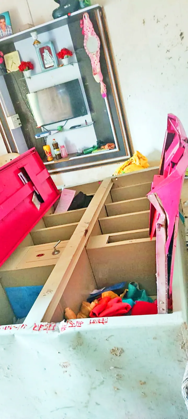 तातडीने त्यांनी शेजारील लोकांना बोलावून घरात प्रवेश केला तर घरातील तिजोरी तोडून साहित्य व कपडे अस्ताव्यस्त पसरलेले नजरेस पडले. शेतात मळणी करत असलेल्या आपल्या पतीला यांची त्यांनी कल्पना दिली.
