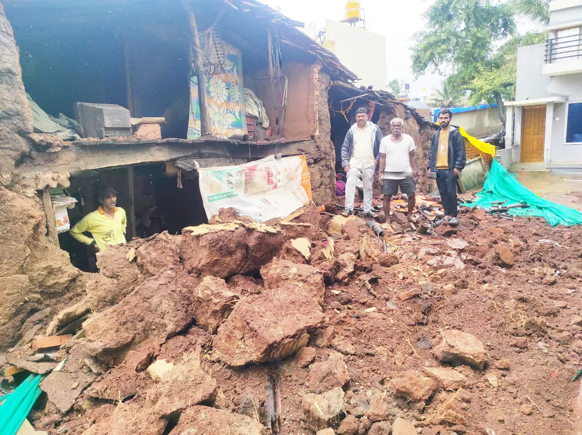 सांबरा येथे घराची भिंत कोसळली तर बसरीकट्टीत गोठा कोसळल्याने चार जनावरे जखमी