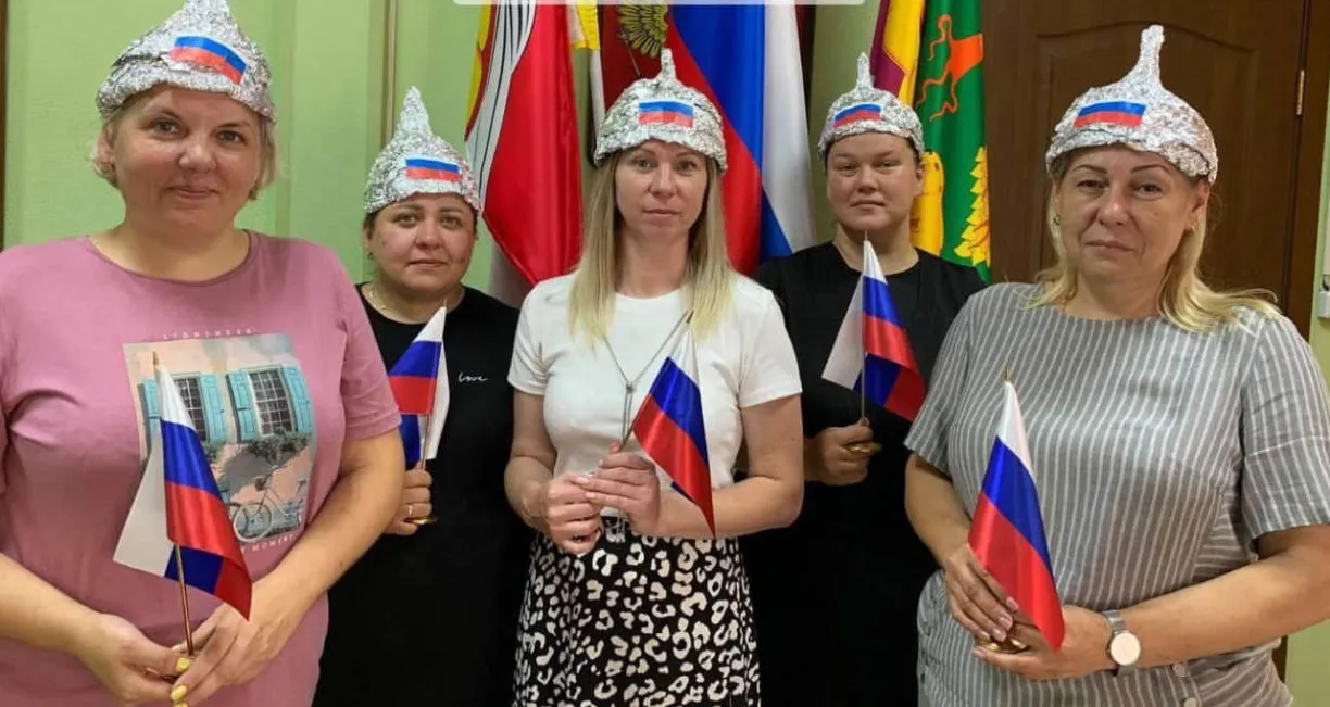 एका बेलारुसी ब्लॉगरने रशियन शिक्षिकांना नाटो उपग्रहांच्या रेडिएशनपासून वाचण्यासाठी अॅल्युमिनियम फॉइलची टोपी तयार करणे आणि ती घालण्यासाठी तयार केले. ब्लॉगर व्लदिस्लाव बोखान हे अशाप्रकारच्या थट्टेसाठी ओळखले जातात. त्याने अनेक रशियन ध्वजाने सजलेल्या अॅल्युमिनियम फॉइल टोपी परिधान केलेल्या रशियन महिलांची छायाचित्रे जारी केली आहेत.