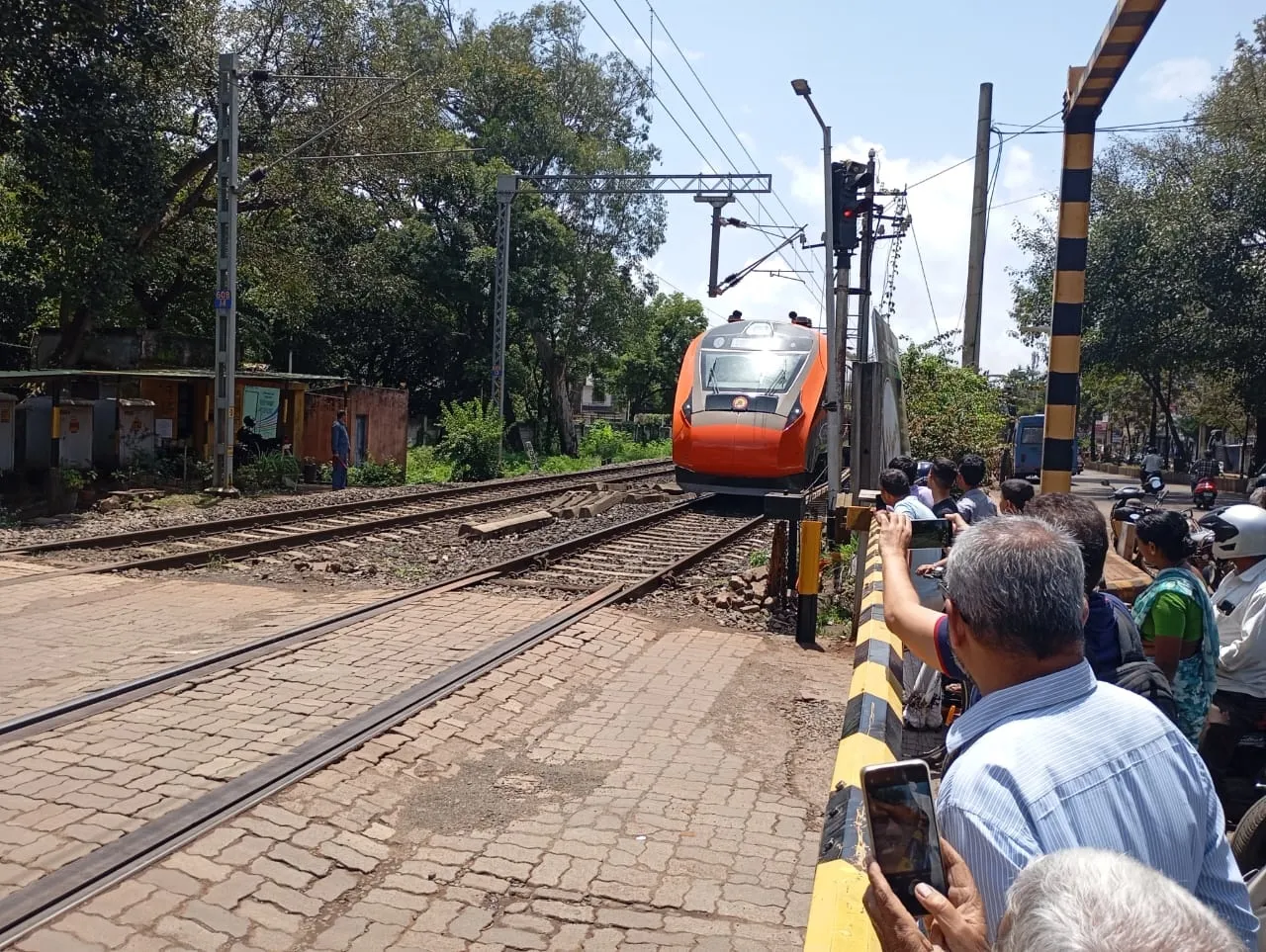 सकाळी साडेदहा वाजता हुबळी येथून निघालेले एक्स्प्रेस दुपारी सव्वाबारा वाजता बेळगावमध्ये पोहोचली. टिळकवाडी येथील दुसरे रेल्वे गेट, पहिले रेल्वे गेट, रेल्वे स्थानक, तानाजी रेल्वेगेट, गांधीनगर या परिसरात वंदे भारत पाहण्यासाठी नागरिकांची प्रचंड गर्दी झाली होती. बेळगावमध्ये दहा मिनिटांचा थांबा घेतल्यानंतर एक्स्प्रेस पुन्हा मिरजच्या दिशेने रवाना झाली. नैऋत्य रेल्वेने दिलेल्या चाचणी वेळापत्रकाप्रमाणेच एक्स्प्रेस योग्य वेळेत दाखल झाली. सायंकाळी देखील दिलेल्या वेळेनुसार वंदे भारत बेळगावला दाखल झाली. यापूर्वी नोव्हेंबर 2023 मध्ये बेंगळूर-बेळगाव वंदे भारतची चाचणी घेण्यात आली होती. त्यावेळी पांढऱ्या रंगाच्या एक्स्प्रेसचा समावेश होता. यावेळी मात्र केशरी रंगातील नवी एक्स्प्रेस बेळगावकरांना पाहता आली. चाचणी यशस्वी झाल्याने आता बेळगावमधील नागरिकांना पुण्यापर्यंतचा वेगवान प्रवास करता येणार आहे.