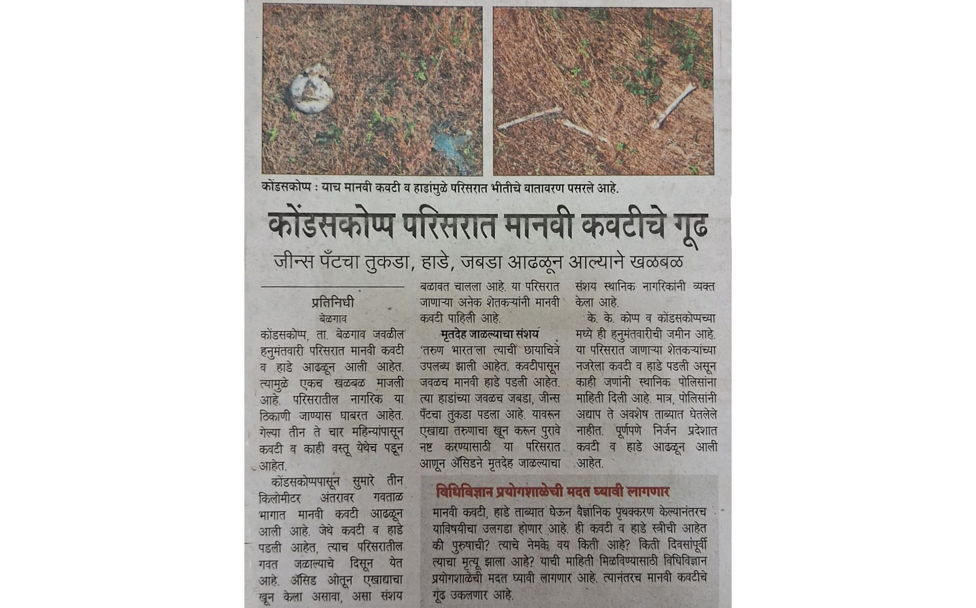 के. के. कोप्प आणि कोंडुसकोपच्या मध्ये हनुमंत वारीचा डोंगर आहे. मानवी कवटीपासून जवळच हाडे, जबडा व जीन्स पँटचा तुकडा आढळला होता. यासंबंधी पिराजी बेळगावकर यांनी हिरेबागेवाडी पोलीस स्थानकात फिर्याद दिली होती. तब्बल पंधरा दिवसांनंतर हनुमंत वारीत आढळलेली कवटी सुमारे 35 ते 40 वर्षीय युवकाची असल्याचे विधिविज्ञान प्रयोगशाळेच्या अहवालावरून स्पष्ट झाले. खून झालेला युवक कोण? त्याचा खून कोणी व कशासाठी केला? या प्रश्नांची उत्तरे दोन वर्षांनंतरही आढळून आली नाहीत. 1 ऑगस्ट 2021 ते 30 जानेवारी 2022 या वेळेत या अज्ञात युवकाचा खून झाल्याचा संशय पोलिसांनी व्यक्त केला. मात्र, या प्रकरणाचा अद्याप उलगडा झाला नाही. कोंडाप्पा स्ट्रीट, कॅम्प परिसरातील ज्या विहिरीत मानवी कवटी आढळली, ती विहीर तब्बल 25 वर्षांपासून पडीक होती. पाणीसमस्येवर मात करण्यासाठी जुन्या विहिरींचे पुनरुज्जीवन करण्याचे काम कॅन्टोन्मेंटने हाती घेतले होते. विहिरीतील गाळ काढून साफसफाई करताना ही कवटी आढळली आहे. कवटी व हाडांव्यतिरिक्त इतर कोणतीही संशयास्पद वस्तू विहिरीत आढळली नाही. त्यामुळे एका निकषापर्यंत पोहोचणे तपास अधिकाऱ्यांना अवघड जात आहे.