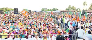 मोदी सरकार आल्यावर अवघ्या वर्षांनी राममंदिर पूर्ण झाले. राहुल बाबा, शरद पवार, प्रियांका गांधी आदींना निमंत्रण देऊनही अयोध्येला गेले नाही. कारण त्यांना वोट बँकची भीती होती. आता सोमनाथ मंदिरही सोन्याचे उभे राहत आहे असे गृहमंत्री म्हणाले. गोवा राज्य विकसित व आत्मनिर्भर करण्यासाठी राज्यातून दोन्ही उमेदवारांना कमळावर शिक्का मारून निवडून आणा असे आवाहन शहा यांनी केले. यावेळी व्यासपीठावर आरोग्यमंत्री विश्वजित राणे, प्रदेशाध्यक्ष सदानंद शेट तानावडे, पंचायतमंत्री माविन गुदिन्हो, सुदिन ढवळीकर, पर्यटनमंत्री रोहन खंवटे, मंत्री गोविंद गावडे, बाबुश मोन्सेरात, उपसभापती जोशुआ डिसोझा, जेनिफर मोन्सेरात, डिलायला लोबो, मायकल लोबो, दिव्या राणे, दिगंबर कामत, राजेश फळदेसाई, जीत आरोलकर, केदार नाईक, प्रवीण आर्लेकर, डॉ. चंद्रकांत पंडित, माजी आमदार दयानंद मांद्रेकर, दयानंद सोपटे, उमेदवार पल्लवी धेंपे, महिला मोर्चा अध्यक्ष आरती बांदोडकर, ग्लेन टिकलो, ऊपेश कामत, राजेश पाटणेकर, दिलीप पऊळेकर, दाजी साळकर, सिल्वेरीया डिसोझा, मंत्री नीळकंठ हळर्णकर आदी उपस्थित होते.