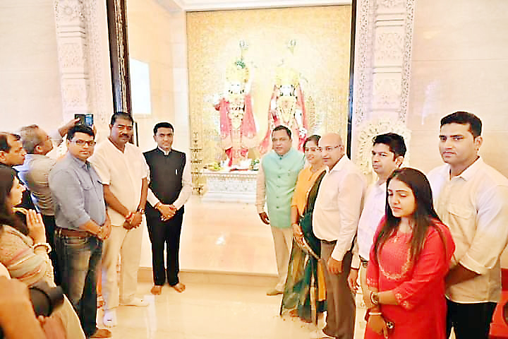 वास्को : सांकवाळ पठारावरील भव्य राधाकृष्ण मंदिराचा उद्घाटन सोहळा बुधवारी पार पडला. यावेळी प्राण प्रतिष्ठापना विधी जगदगुरू शंकराचार्य यांच्या उपस्थितीत संपन्न झाला. बिर्ला कुटुंबाच्या या खासगी सोहळ्याला मुख्यमंत्री डॉ. प्रमोद सावंत यांनीही उपस्थिती लावली. मंत्री माविन गुदिन्हो, आमदार संकल्प आमोणकर, सांकवाळचे उपसरपंच गिरीष पिल्ले व इतर मान्यवर या सोहळ्यात सहभागी झाले होते. या सुंदर राधाकृष्ण मंदिराचे उद्घाटन प.पू. ज्योतीष पीठाधिश्वर जगद्गुरू शंकराचार्य स्वामीजी अविमुक्तेश्वरानंद सरस्वती महाराजांच्या हस्ते करण्यात आले. उद्योगपती बिर्ला कुटुंबाच्या ‘राधा-कृष्ण’ मंदिराचा भव्य उद्घाटन सोहळ्याचा भाग होणे हा आपल्यासाठी खरोखरच सन्मानाचा विषय असल्याचे मुख्यमंत्री डॉ. प्रमोद सावंत यांनी सांगितले. विशाल व सुंदर राधाकृष्ण मंदिर राज्याचे आकर्षण ठरणार आहे. या सुंदर मंदिरात देशभरातील भाविक विशेषत: पर्यटक भेटी देतील ज्यामुळे राज्याच्या पर्यटनालाही चालना मिळेल असे डॉ. सावंत यावेळी म्हणाले. गोव्यात अशा प्रकारच्या सुंदर मंदिराची उभारणी केल्याबद्दल बिर्ला कुटुंबाचे अभिनंदन केले. यावेळी मुख्यमंत्र्यांनी शंकराचार्यांचे आशिर्वाद घेतले.