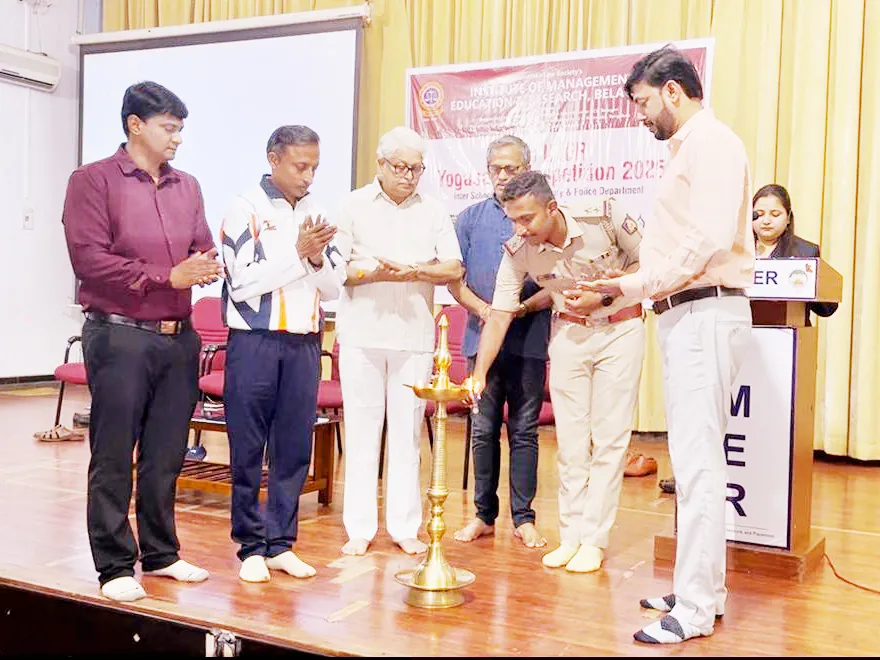 बेळगाव : कर्नाटक लॉ सोसायटी आयएमईआर आयोजित योग दिनाचे औचित्य साधून योग स्पर्धेचे उद्घाटन मोठ्या उत्साहात करण्यात आले. आयएमईआरच्या सभागृहात खुल्या योग स्पर्धेचे उद्घाटनप्रसंगी प्रमुख पाहुणे म्हणून योगगुरु मुरलीधर प्रभू, पोलीस उपनिरीक्षक हरीष के. एल., आयएमईआरचे चेअरमन आर. एस. मुतालिक-देसाई, डायरेक्टर डॉ. आरिफ शेख, योग तज्ञ विनायक कोनगी, क्रीडा निर्देशक जॉर्ज रॉड्रीक्स आदी मान्यवर उपस्थित होते. या सदर स्पर्धेत आंतरशालेय व खुल्या विभागात जवळपास 70 हून अधिक स्पर्धकांनी सहभाग घेतला होता. मान्यवरांच्या हस्ते दीपप्रज्वलन करून स्पर्धेचे उद्घाटन करण्यात आले. यावेळी राष्ट्रीय पदक विजेता विनायक कोनगी यांनी योगासनाची प्रात्यक्षिके सादर केली.
