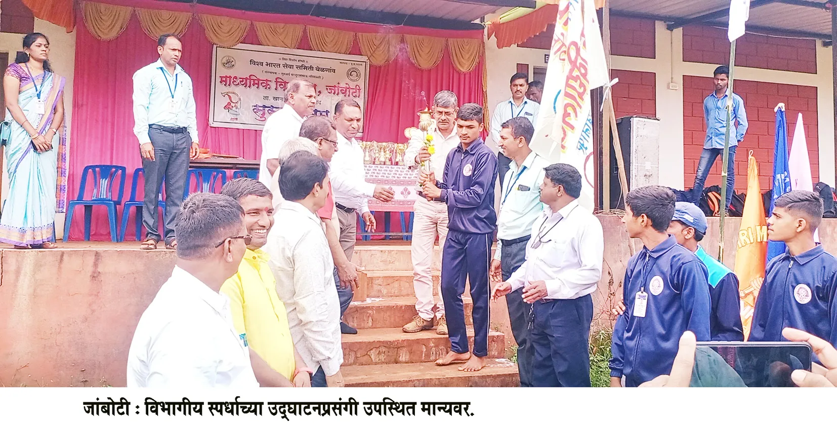 कणकुंबी : शिक्षण खात्यामार्फत घेण्यात येणाऱया माध्यमिक शाळांच्या जांबोटी विभागीय क्रीडा स्पर्धांचा उद्घाटन समारंभ विविध मान्यवरांच्या उपस्थितीत झाला. या क्रीडा स्पर्धाचे यजमानपद माध्यमिक विद्यालय जांबोटीकडे होते. सदर क्रीडा स्पर्धा जांबोटी येथील बाबुराव ठाकुर महाविद्यालयाच्या क्रीडांगणावर झाल्या. अध्यक्षस्थानी विश्व भारत सेवा समितीचे अध्यक्ष विजय नंदिहळ्ळी होते. यावेळी मान्यवरांच्या हस्ते दीपप्रज्वलन आणि फोटो पूजन झाले. मुख्याध्यापक महेश सडेकर यांनी स्वागत केले. यावेळी विश्वभारती क्रीडा केंद्राचे राज्याध्यक्ष अशोक शिंत्रे यांच्या हस्ते ध्वजारोहण तर देणगीदार रवींद्र कळ्ळेकर यांच्या हस्ते क्रीडाज्योत प्रज्वलित करण्यात आली. बेळगाव चेंबर ऑफ कॉमर्सचे संचालक विठ्ठल गवस यांच्या हस्ते क्रीडा स्पर्धांचे उद्घाटन करण्यात आले.