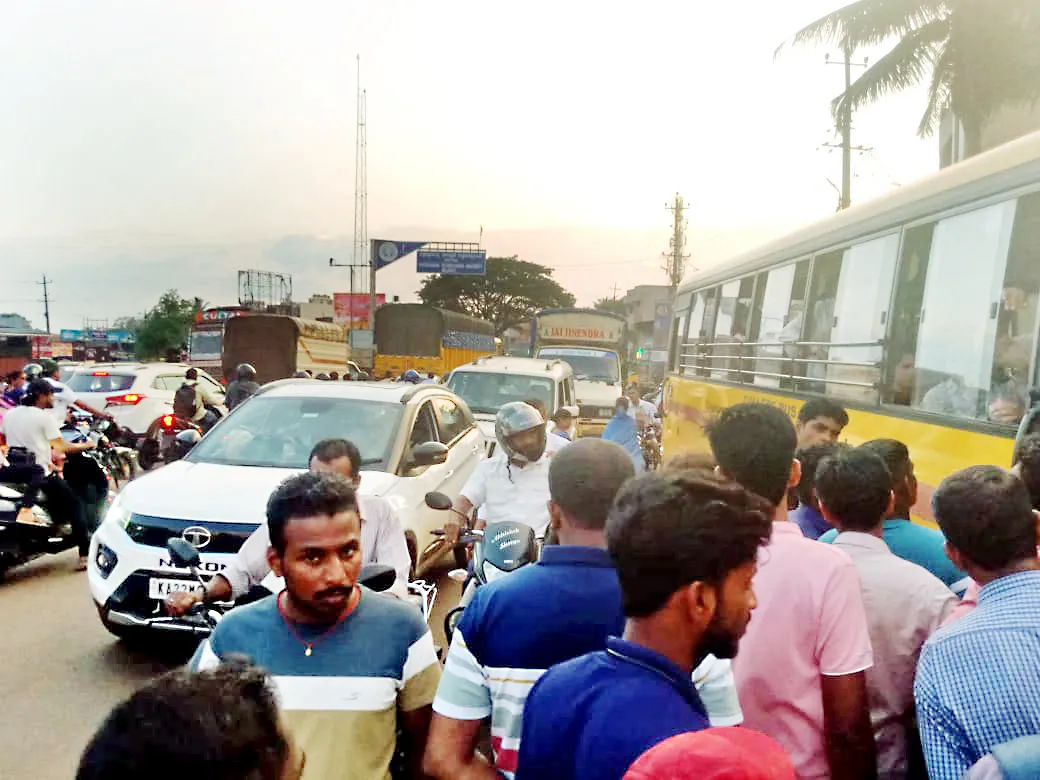 खानापूर रोड, पिरनवाडी येथील छ. शिवाजी महाराज चौकादरम्यान बुधवारी सायंकाळी 6 च्या समारास वाहतुकीची कोंडी झाली. त्यामुळे बराचवेळ वाहनांच्या तिन्ही बाजूला रांगा लागल्या होत्या. घाईगडबडीमध्ये चारचाकी आणि दुचाकी एकमेकाला समोरासमोर ठोकरल्यामुळे सदर प्रकार घडला. कोणाचेही फारसे नुकसान झाले नाही व दुखापतही झालेली नाही. मात्र दोन्ही चालकांच्या हेकेखोरपणामुळे वाहतुकीची कोंडी झाली. कोणीही माघार घेण्यास तयार नसल्याने आणि सायंकाळची वेळ असल्याने तिन्ही बाजूला वाहतूक कोंडी झाली. काही वाहनधारकांनी समजूत काढल्यानंतर रस्ता खुला झाला आणि वाहतूक सुरळीत झाली. मात्र यावेळी एकही पोलीस तेथे उपस्थित नव्हता. छ. शिवाजी महाराज चौकात पूर्णवेळ एक वाहतूक पोलीस ठेवावा, अशी मागणी नागरिकांतून करण्यात येत आहे.