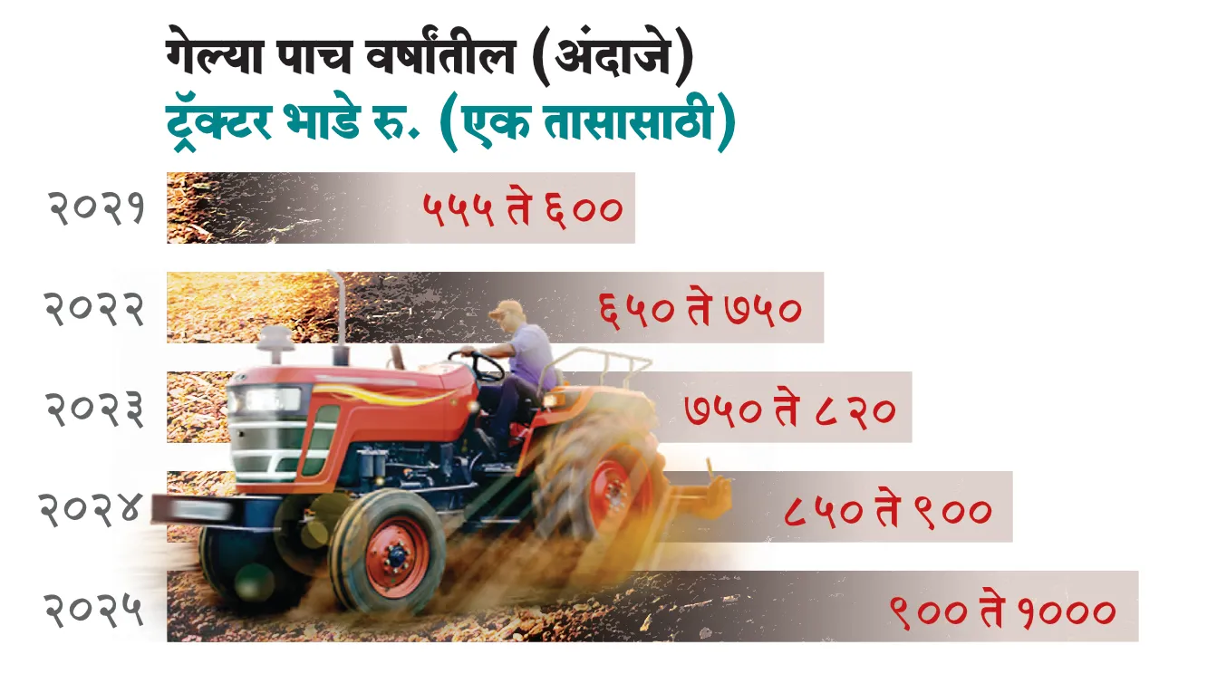 नैसर्गिक आपत्ती, पावसाची अनिश्चितता, कीडीचा प्रादुर्भाव, अनेक संकटामुळे पिकांचे नुकसान होते. त्यामुळे शेतकऱ्यांच्या पदरात शिल्लक काहीच राहत नाही. त्यातच शेतमालाचे भाव घसरत असल्याने शेतकरी अनेक संकटात सापडले आहेत. असे असताना पुन्हा इंधन दरवाढीने शेतकऱ्यांचे कंबरडे मोडले आहे. इंधन दरवाढीमुळे शेतीतील ट्रॅक्टर, पॉवर ट्रिलर आणि इतर यंत्रसामग्रीच्या भाडेदरात मोठी वाढ झाली आहे. त्यामुळे शेती उत्पादनासाठी येणारा खर्च भागविताना शेतकऱ्यांचे नाकीनऊ होणार आहे. ट्रॅक्टरचे भाडे पूर्वी तासासाठी 800 ते 1000 रुपये हेते. आता ते 1500 ते 2000 रुपयांवर गेले आहे. त्याबरोबर नांगरणी आणि इतर कामासाठी जादा पैसे मोजावे लागत आहेत. त्याबरोबर शेतमालाची बाजारपेठेपर्यंत वाहतूक खर्चही महागला आहे. एकूणच शेतकऱ्यांना वाढत्या महागाईला सामोरे जावे लागणार आहे.