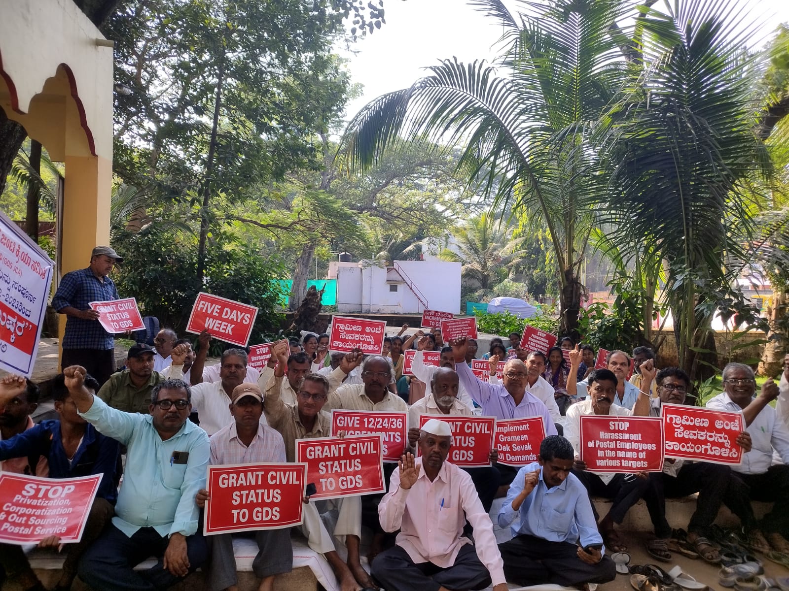 ग्रामीण डाकसेवकांनी 12 डिसेंबरपासून बेमुदत आंदोलन सुरू केले आहे. त्यामुळे ग्रामीण भागातील डाकसेवा विस्कळीत झाली आहे. परिणामी नागरिकांची गैरसोय होऊ लागली आहे. पत्रव्यवहार, पेन्शन, बँकिंग सेवा आणि इतर सेवा ठप्प झाल्या आहेत. कार्यकारी अध्यक्ष पी. आर. पाटील, कार्यदर्शी शिवाप्पा बळगण्णावर, खजिनदार टी. एस. पाटील, शैलजा तल्लूर, परिमळा दारोजी, मंजुषा कुलकर्णी, निर्मला गाणगी यासह अधिक ग्रामीण डाकसेवक सहभागी झाले आहेत.
