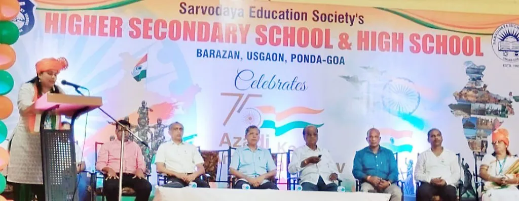 सर्वोदय शिक्षण संस्थेचे विद्यालय आणि उच्च माध्यमिक विद्यालयाच्या संयुक्त विद्यमाने देशाचा अमृत महोत्सवी स्वातंत्र्यदिन उत्साहाने साजरा करण्यात आला. यावेळी प्रमुख पाहुणे म्हणून संस्थेचे अध्यक्ष तुषार उसगांवकर, संस्थेचे उपाध्यक्ष गजानन नाईक, सचिव गिरीश उसगांवकर, संस्थेचे सभासद गुरुदास गावडे, उल्हास गावडे, उच्च माध्यमिक विद्यालयाचे प्राचार्य संदेश नाईक, विद्यालयाच्या मुख्याध्यापिका श्रीमती आशालता मिशाळ, पालक शिक्षक संघाच्या उपाध्यक्ष गितांजली नाईक आदी उपस्थित होते. प्रमुख पाहुणे तुषार उसगांवकर यांच्याहस्ते ध्वजारोहण करण्यात आले.