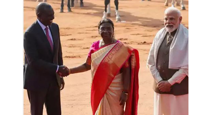 केनियाचे राष्ट्रपती रुतो हे सोमवारी भारतात दाखल झाले होते. रुतो यांचे मंगळवारी राष्ट्रपती भवनात राष्ट्रपती द्रौपदी मुर्मू यांनी औपचारिक स्वागत केले. यादरम्यान पंतप्रधान मोदीही उपस्थित होते. केनियाचे राष्ट्रपती तीन दिवसीय दौऱ्यावर आले आहेत. त्यांच्या या दौऱ्याचा उद्देश द्विपक्षीय संबंध अधिक मजबूत करणे आहे.