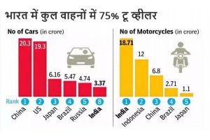 रोड ट्रान्सपोर्ट ईयर बुकच्या नव्या आकडेवारीनुसार भारतात नोंदणीकृत दुचाकी वाहनांची संख्या सर्वाधिक आहे. भारतानंतर याप्रकरणी इंडोनेशियाचा क्रमांक लागतो. तर कार्सच्या संख्येप्रकरणी भारत जगात 8 व्या स्थानावर आहे. या यादीत चीन, अमेरिका अन् जपान पहिल्या तीन स्थानांवर आहेत.