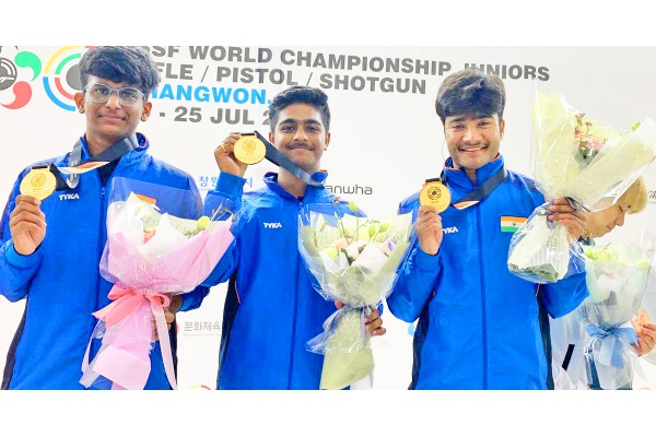 पुरुषांच्या 10 मी. एअर रायफल सांघिक नेमबाजी प्रकारात पार्थ, अभिनव आणि धनुद यांनी 1886.7 गुणासह सुवर्णपदक पटकावले. चीनने या क्रीडा प्रकारात 1883.5 गुण घेत रौप्यपदक तर कोरियाने कास्यपदक घेतले. या स्पर्धेतील अभिनव शॉचे हे दुसरे सुवर्णपदक आहे. सोमवारी या स्पर्धेत अभिनव शॉ आणि गौतमी भानोत यांनी 10 मी. एअर रायफल मिश्र सांघिक प्रकारात सुवर्णपदक मिळवले होते.