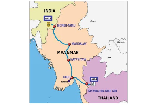 तीन देशांना जोडणारा हा महामार्ग कोलकात्यापासून सुरूत होत सिलीगुडीपर्यंत जाणार आहे आणि मग कूचबिहारमार्गे आसाममध्ये प्रवेश करणार आहे. आसाममधून दीमापूर आणि नागालँडनंर मणिपूरच्या इंफाळनजीक मोरेह येथे हा मार्ग विदेशात म्हणजेच म्यानमारमध्ये प्रवेश करणार आहे. म्यारमारमध्ये बागो आणि यंगूनमार्गे लोकांना थायलंडमध्ये प्रवेश करता येणार आहे.