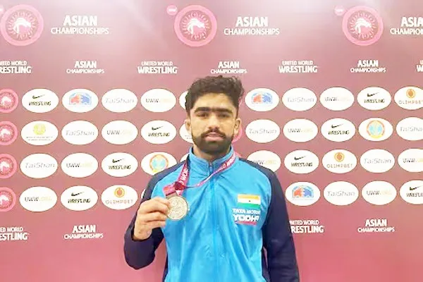 येथे सुरू असलेल्या 2023 च्या आशियाई कुस्ती चॅम्पियनशिप स्पर्धेत सोमवार अखेर भारतीय मल्लांनी चार पदकांची कमाई केली आहे. भारताचा ग्रीको रोमन प्रकारात खेळणारा मल्ल विकासने 72 किलो वजन गटात कांस्यपदक मिळवले.
