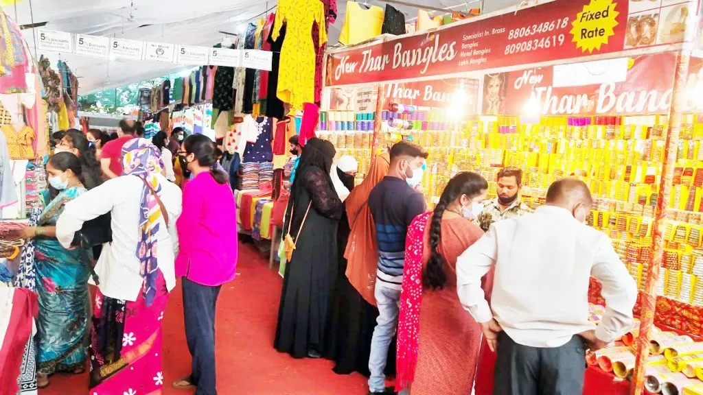 स्टॉल्स मांडण्यात आले आहेत. त्यामध्ये भारताच्या विविध भागातील हॅन्डलूम व हॅन्डीक्राफ्ट उत्पादनांची मांडणी करण्यात आली आहे. त्यामध्ये लखनवी चिकन सुट, सहारनपूर फर्निचर, राजस्थानी बांगडय़ा, कार्पेट्स, राजस्थानी पेंटिंग्ज, सतरंजी, बनारसी, चंदेरी सिल्क साडय़ा, पश्चिम बंगालच्या साडय़ा, बेडकव्हर, दिवान सेट, केरळ ज्युवेलरी, मोजडी, फॅन्सी चप्पल, लेदर बॅग, टॉप्स, कॉटन शर्ट, टी-शर्ट, पंजाबी सूट, मंगलगिरी डेस मटेरियल, कॉटन साडय़ा याबरोबरच भव्य अशा स्टॉल्सवर शोभेच्या वस्तू, वेगवेगळय़ा प्रकारच्या चिनीमातीच्या बरण्या, शोभेच्या वस्तू, फुलपात्रे, सर्व प्रकारची क्रॉकरी आदी वस्तूंचा समावेश आहे.