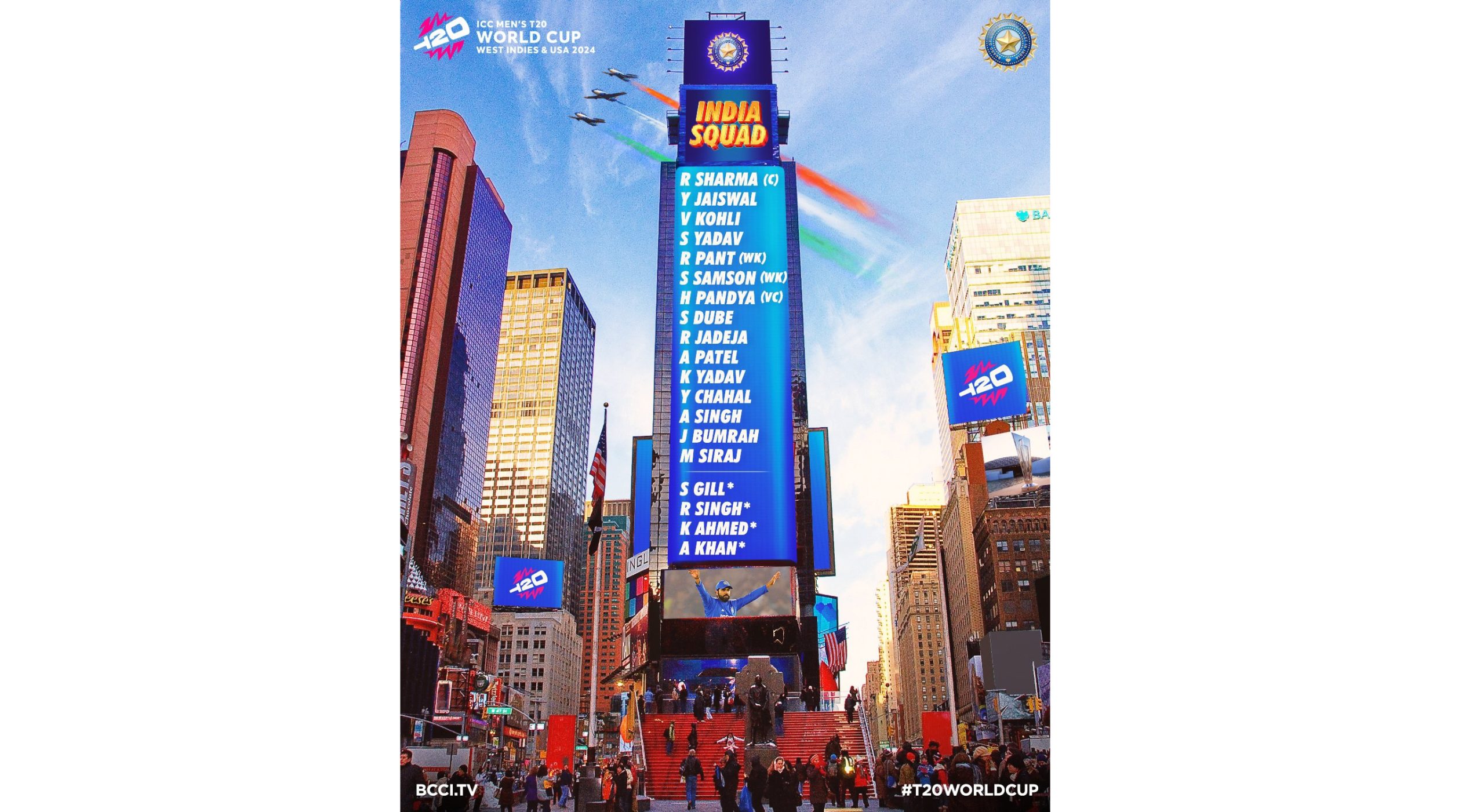 टी-20 वर्ल्ड कपसाठी भारतीय संघ : रोहित शर्मा, यशस्वी जैस्वाल, विराट कोहली, सूर्यकुमार यादव, ऋषभ पंत (यष्टीरक्षक), संजू सॅमसन (यष्टीरक्षक), हार्दिक पांड्या (उपकर्णधार), शिवम दुबे, रवींद्र जडेजा, अक्षर पटेल, कुलदीप यादव, युजवेंद्र, अर्शदीप सिंग, जसप्रीत बुमराह, मोहम्मद सिराज. राखीव : शुभमन गिल, रिंकू सिंग, खलील अहमद, आवेश खान
