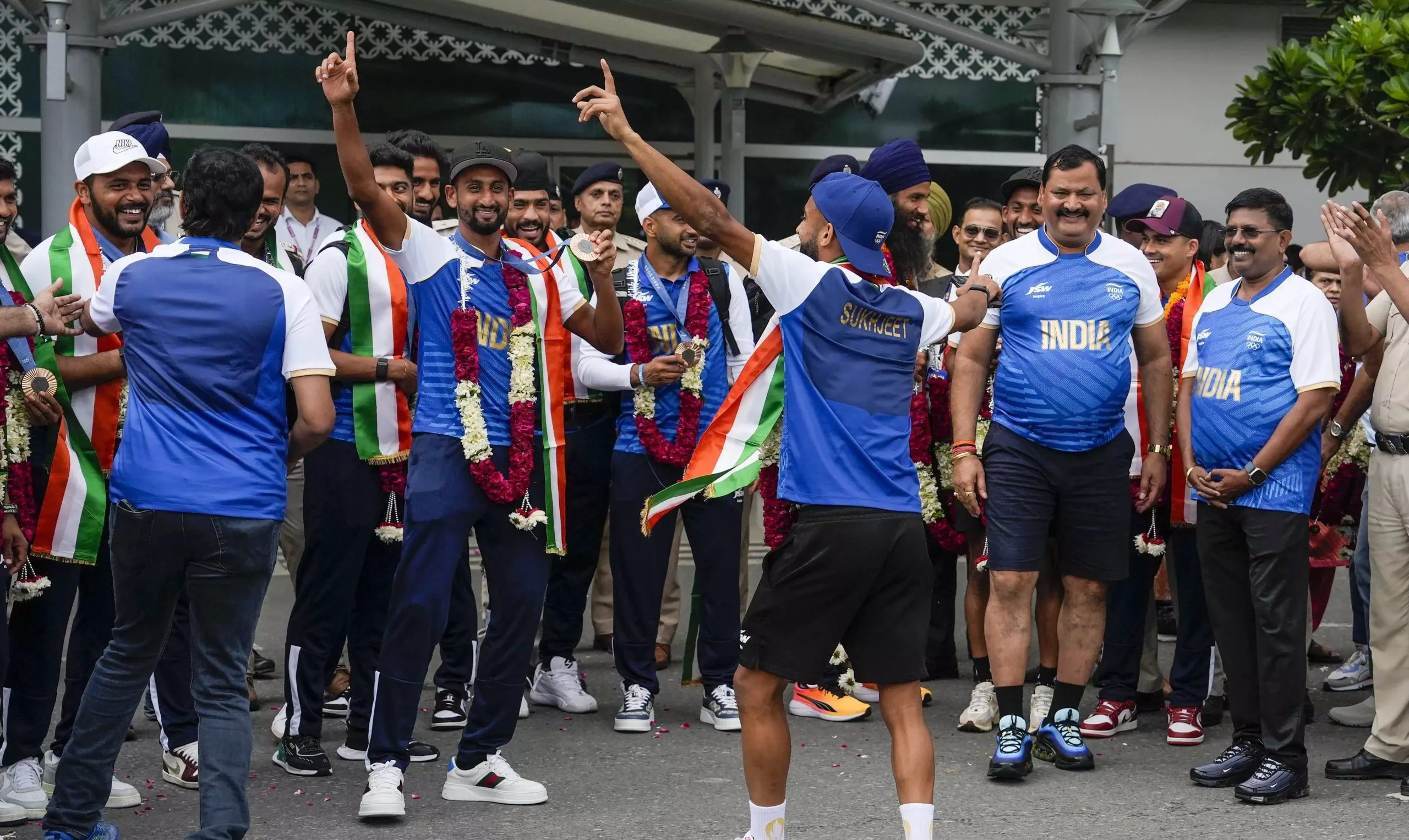 पॅरिस ऑलिम्पिक स्पर्धेत कांस्यपदक मिळविणाऱ्या हरमनप्रित सिंगच्या नेतृत्वाखालील भारतीय हॉकी संघाचे शनिवारी येथे आगमन झाले. दिल्लीच्या विमानतळावर हॉकीपटूंचे स्वागत करण्यासाठी हजारो शौकिन उपस्थित होते. हॉकी इंडियाचे पदाधिकारी तसेच हॉकी शौकिनांनी आपल्या हॉकीपटूंचे जल्लोषी स्वागत केले.
