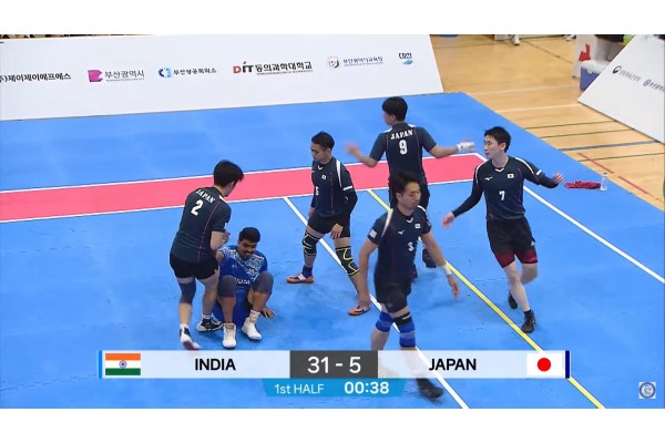 भारत आणि जपान यांच्यातील सामन्यात भारताने पूर्वार्धात तीनवेळा तर उत्तरार्धात तीनवेळा जपानचे सर्व गडी बाद केले. विद्यमान विजेत्या भारताने चौथ्याच मिनिटाला जपानचे सर्व गडी बाद करून 18-0 अशी आघाडी मिळवली होती. सामन्यातील 8 व्या मिनिटाला जपानला काही गुण मिळवता आले. मध्यंतरापर्यंत भारताने जपानवर 32-6 अशी आघाडी मिळवली होती. भारतीय संघातर्फे कर्णधार पवन सेहरावत हा सर्वोत्तम चढाईपटू ठरला. त्याने पूर्वार्धात 6 गुण मिळवले. भारताने उत्तरार्धात 30 गुण मिळवून हा सामना 45 गुणफरकाने जिंकला. आता या स्पर्धेत गुरुवारी भारताचा महत्त्वाचा सामना बलाढ्या इराणबरोबर होणार आहे. इराणच्या कब•ाr संघाने या स्पर्धेत अद्याप एकही सामना गमवलेला नाही. या स्पर्धेमध्ये इराण, भारत, जपान, कोरिया, चीन तैपेई आणि हाँगकाँग या सहा संघांचा समावेश असून येत्या शुक्रवारी स्पर्धेतील अंतिम सामना खेळवला जाईल. सदर स्पर्धा सिंगल लेग राऊंड रॉबिन पद्धतीची खेळवली जात असून आघाडीचे दोन संघ अंतिम फेरीसाठी पात्र ठरतील.