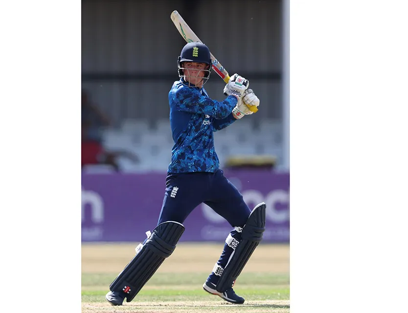 संक्षिप्त धावफलक : भारत 50 षटकात 9 बाद 210 (अंबरिश नाबाद 66, सूर्यवंशी 33, पांगलिया 24, चौहान 24, राहुल कुमार 21, फ्रेंच आणि अल्बर्ट प्रत्येकी 2 बळी), इंग्लंड : 31.1 षटकात 3 बाद 211 (मेस नाबाद 82, डॉकिन्स 66, रिव्ह नाबाद 49, पुष्पक 2-65, देवेंद्रन 1-34).